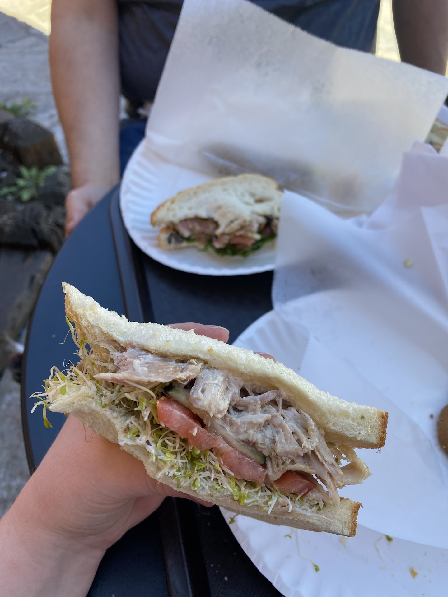 Major fail on my part. This review is for sandwiches only. I went in for breakfast or lunch but ended getting a half soup and half sandwich. The soup was okay. I guess you can't have good clam chowder everywhere and the free cookie was hard. But man that was a huge sandwich! I think half sandwich is a joke. The joke is you can only finish half of it. I ordered a roast beef with everything plus avocado and I ate the whole thing but I didn't leave room for dessert. Sad face but at least the sandwich was great. Easily one of the top sandwiches I have had from a deli. Seeing a fresh sourdough go in to the bread cutting machine is a beautiful thing. It's just too bad the calm chowder was just okay. Maybe I will go with the beef veggie next time.