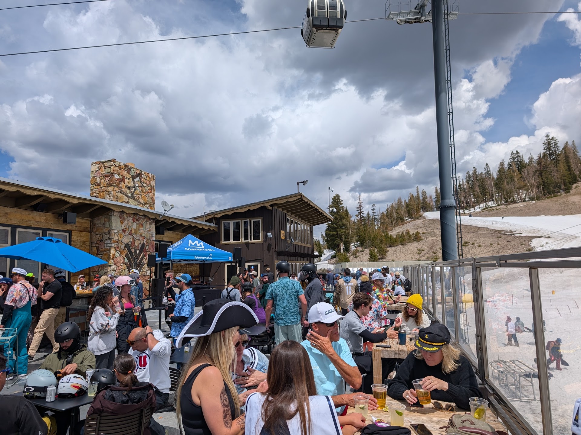 This is a good mountain side bar that is part of the main lodge at Mammoth. The food is surprisingly good, but the only service is the bartenders (who are all great and efficient with the orders despite the long lines at peak times). The DJ'd music and live bands are usually quite good, but the speakers are just a hair too loud for those sitting on the outside patio (I think they have the volume set high to reach those on the slopes near the lifts, but that could be solved with simply adding speakers on the...
