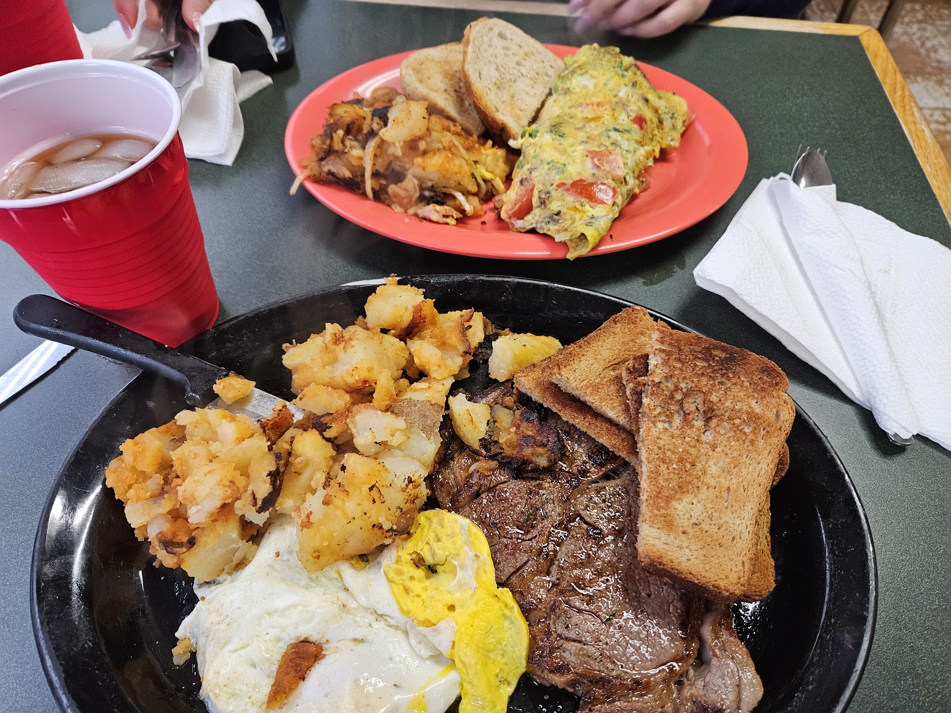 Read moreThe phenomenal waitress (regretfully I never got her name) approached our table carrying my MASSIVE Cowboy Jim omelette and said something like, “I hope you’re hungry!” GOOD GRACIOUS! Stuffed with ham, peppers, onions, tomatoes, Swiss and American cheese, this three-egg masterpiece was just delightful. The side order of pork roll was great, as were the home fries (with onions, of course). Coffee? Fantastic. Service? Great, especially considering this ONE PERSON was COOKING AND SERVING ALL BY HERSELF. There were 17 people in the place at the time and no one was kept waiting very long. My only regret? Not being able to sit at the counter with a clear view of the grill (locals had every seat). Keep in mind that this place looks pretty scary from the street. It’s an effective strategy, I’d say, because that keeps the crowds down. Besides, folks that know and love this place likely want to keep it all to themselves…sorry, I should delete this review!🤣 Pro Tip: park around back or on the side, right in front is kinda dicey unless...