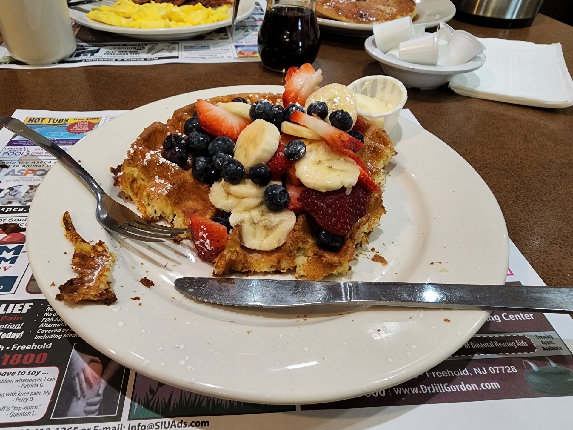 My wife and I were just there and had a great breakfast. I was delighted to see that they have a healthy vegetable omelette. It was excellent. And my wife enjoyed the banana walnut nut pancakes. And the vegetarian omelette came with fresh fruit. Our server, Emily, was very friendly, and responsive to our needs.