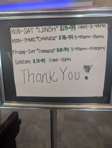 Read moreWhile this buffet is fairly reasonably priced ($16.99 for dinner), the food quality poor. You could clearly see steam rising from each serving station, but much of the food I tried was luke warm at best. It was evident that the food had been sitting out for quite some time, especially the eggrolls that hardened like rocks on the seam.