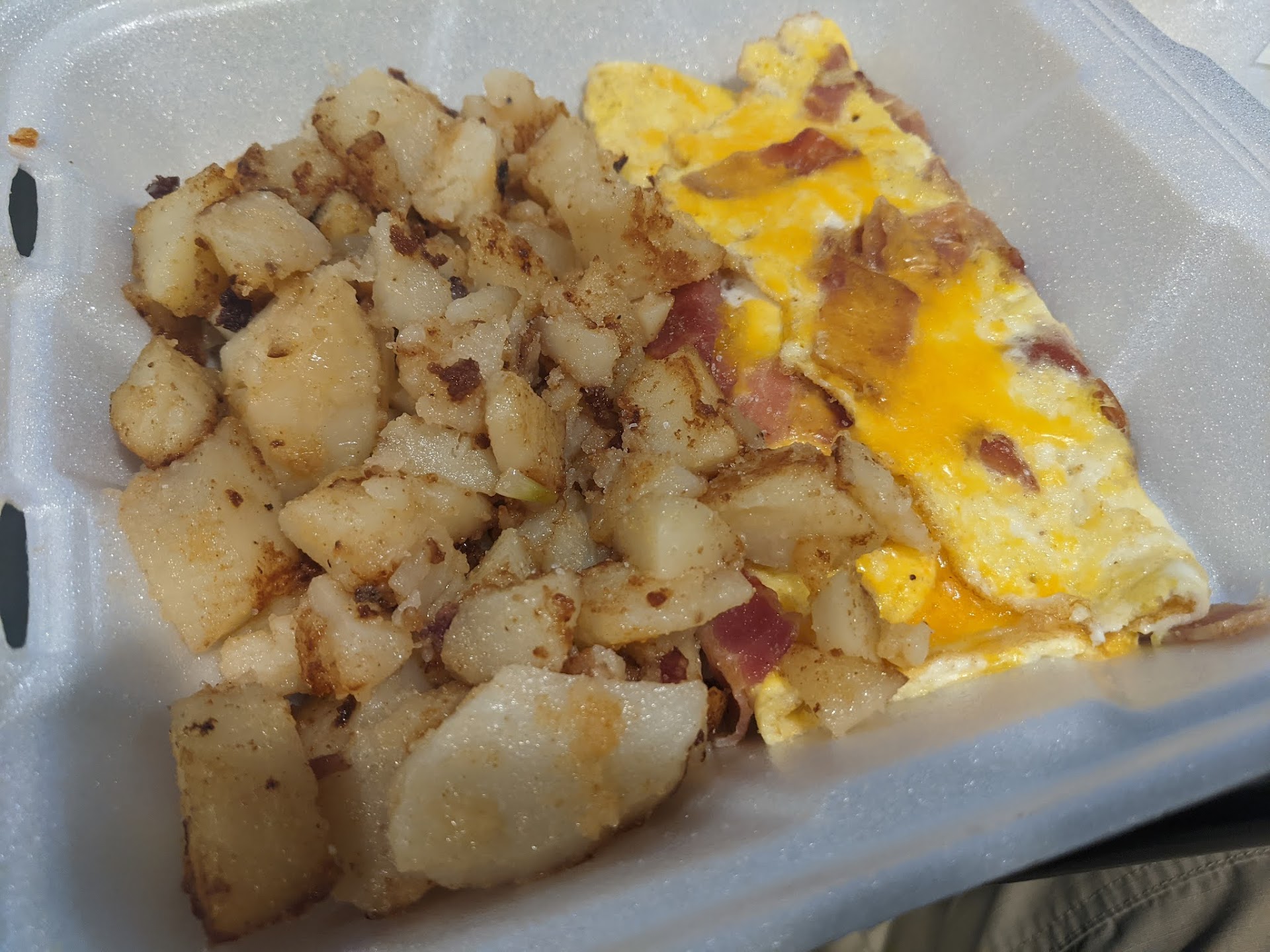 Update: The breakfast was one of the worst breakfasts that Iâve ever had. I had really been craving breakfast, and work across the street. I called on my way and ordered the sausage casserole, the only good part of the experience was the older waitress who has been there as long as Iâve been alive, but the same rude manager was there. It came with pancakes and added a small side of cheese grits. My total was around $25. The casserole was bone dry and like rubber and was a tiny square. I donât know what they put on the pancake mix but it was soo bitter and sour and tasted nothing like a pancake, it was also burnt. I immediately spit it out. I think it was refrigerated from the day before and it went bad, or the milk mixes in was bad. The only thing I could stomach were the grits, but they were extremely thick and had no flavor. I hate McDonaldâs, but I wouldâve been way better off with a lot more food if I wouldâve ordered a big breakfast.