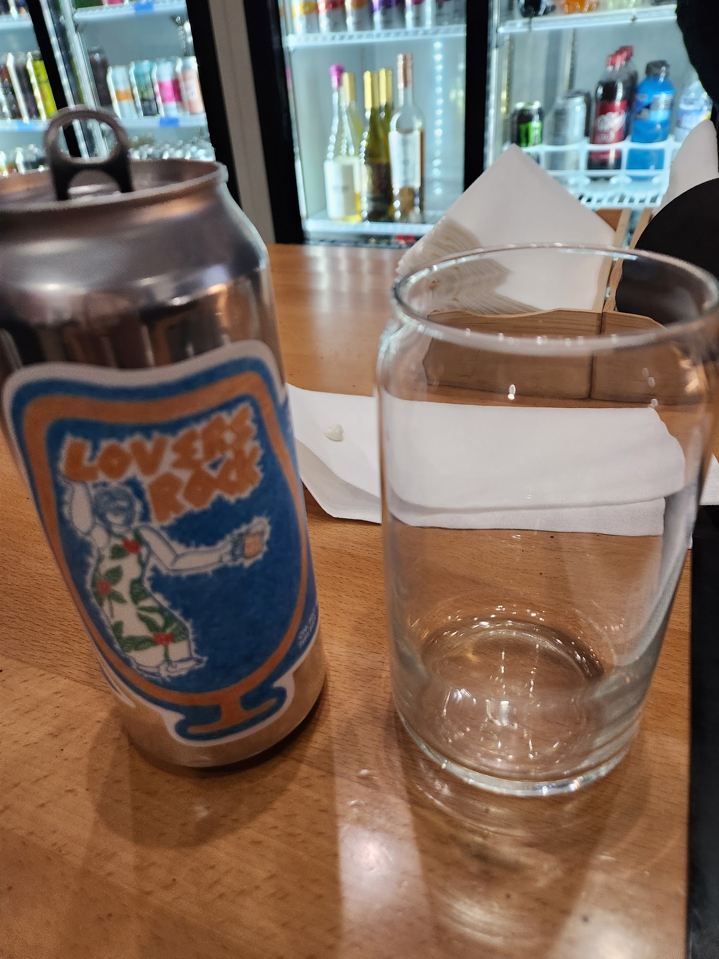 The atmosphere is perfect—it’s modern and current, comfortable and intimate. It’s built into a beautiful historic building (even registered on the National Register of Historic Places), with two levels and a cool upstairs loft area with tables and a second bar. We loved the unique decor, which includes posters of The Beatles and Van Halen, plus electric guitars and a snare drum mounted on the walls. Every detail, right down to the impeccably neat and organized coolers behind the main bar, shows the owner's care. Even the round blue and white sign outside is stylish and photo-worthy.