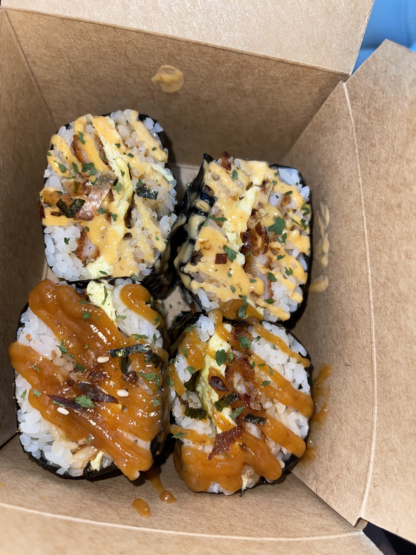 The Musubis were scrumptiousss, like wow! I ordered the katsu musubis & they did not disappoint. The seaweed was super fresh too. & the egg omelette in it was soft, light, & tasty.