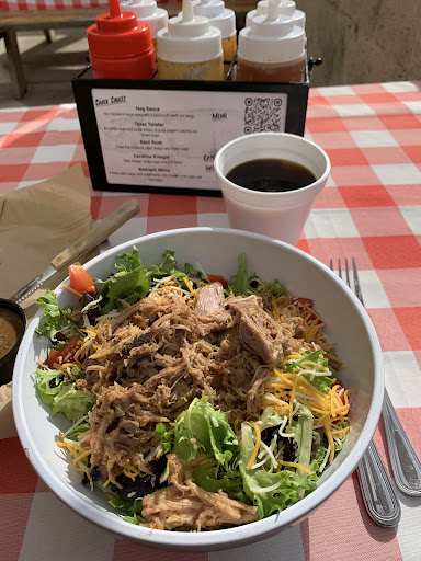 Well, the food was absolutely perfect. The salad was perfect topped with a succulent pulled pork. I tried of the gold rush sauce, and it was very good. A little bit sweet for me but still good.