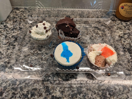 Got a case of 6 cupcakes for $20, and an iced latte from the farmers market in lake ridge yesterday. Most of us were pretty disappointed with them, my brother thought the red velvet was fine. The dark chocolate was also alright. We were unimpressed by the slapdash presentation they all had, and found the cupcakes themselves to be dense and stodgy. The salted caramel doesn't really taste of salted caramel, and the lemon berry was the worst, taste and texture-- I couldn't finish it. For $4 a cupcake, we were just really underwhelmed. We probably would have been happier if we'd bought a mix and pre-made icing from the store. The iced latte I ordered was okay, but I couldn't taste the hazelnut flavor I asked for. Probably also wasn't worth $4.