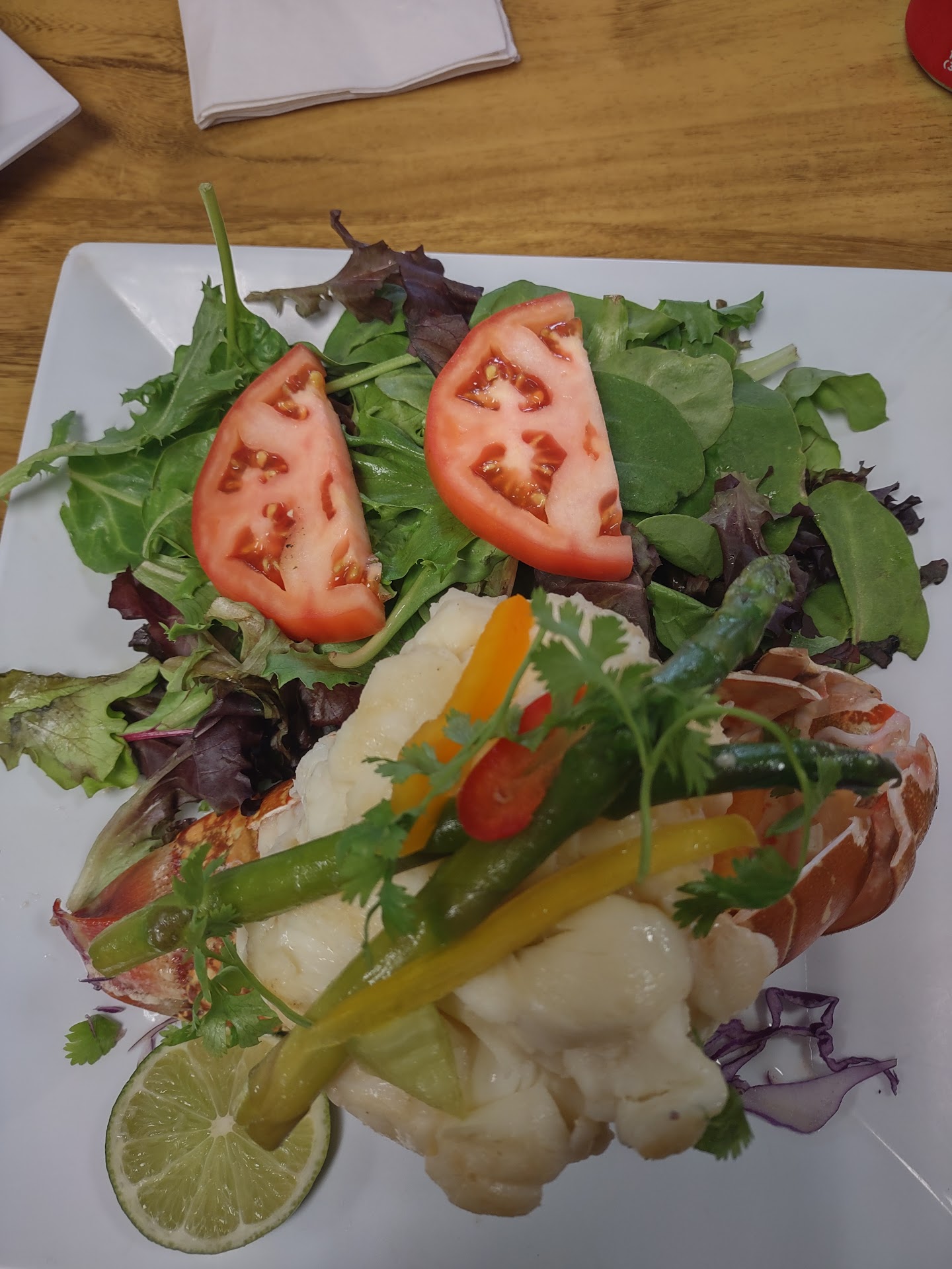 The seasoned butter was also not heavily seasoned. So when you did add some flavor, the butter, garlic, herb mix did not drown the lobster flavor. Overall an...