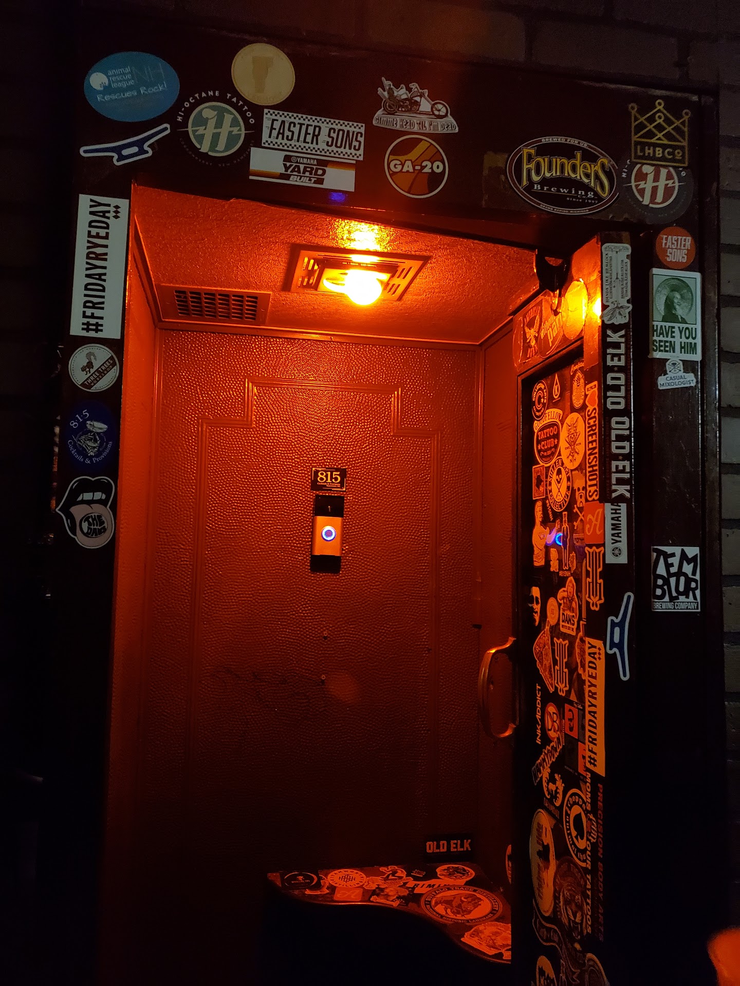 Read more815 Cocktails & Provisions is a speakeasy that requires a password to enter. Upon entry, we were carded. After being carded, you have the option to climb a long flight of stairs or take the elevator up one story. Once you get upstairs, you have to hit the ring doorbell and the hostess asked us for the password, which was never communicated to us. Since we didn't know the password, she asked us to tell a funny joke. After telling a funny joke, we were told that the password was communicated via their social media page.
