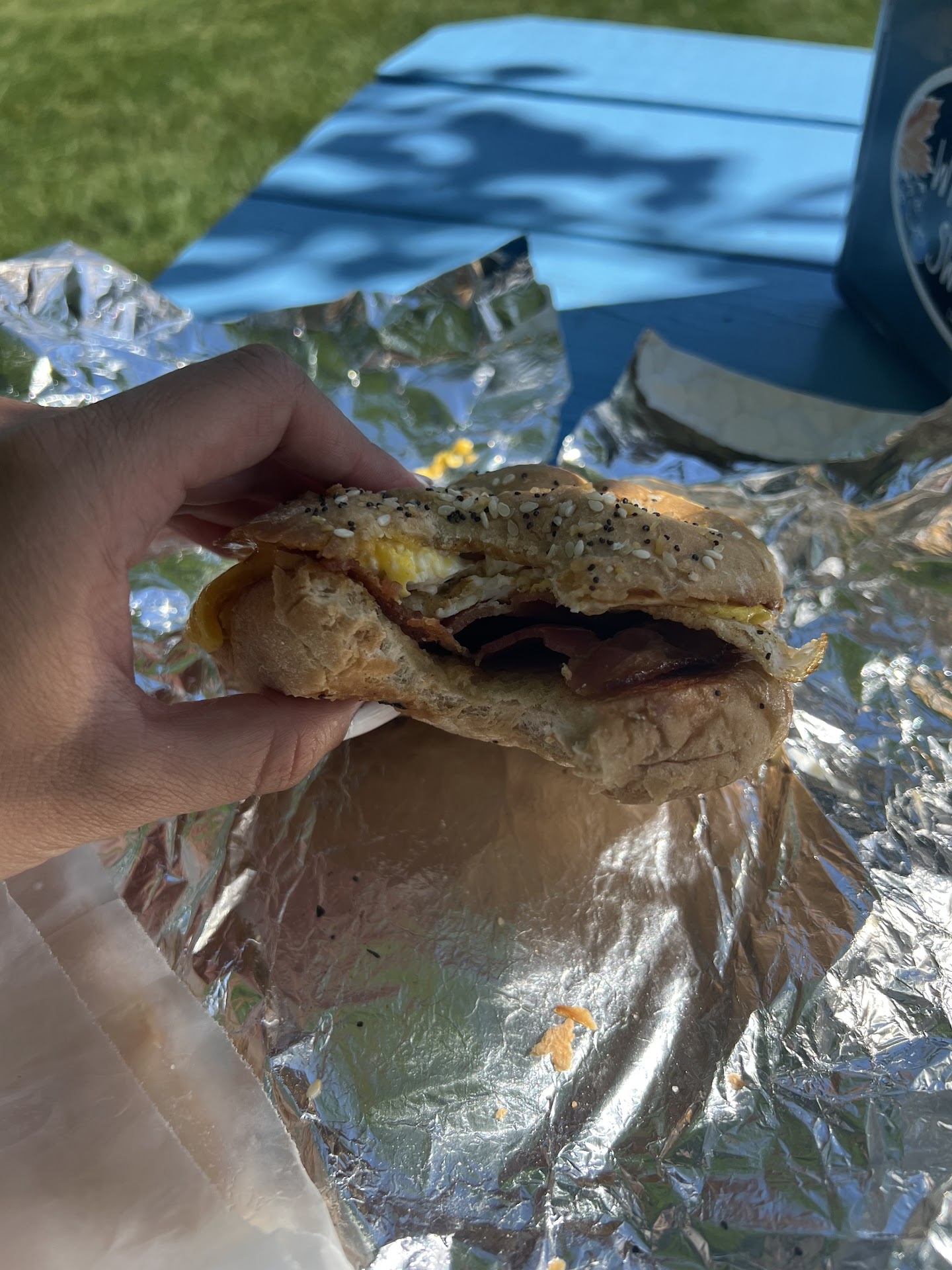 The ordering system could be improved - for orders at the counter you're given a number, and for online orders it takes a name. Our order took 25 mins, and when it was ready no one called it, instead the breakfast sandwich was put on the counter. After 5 mins I went up and checked, and had to proactively ask for the rest of the order. The breakfast sandwich was good, the muffin tasteless, and the milk I added to my coffee was sour as it had been sat out in the heat all morning. Also, the self-serve coffee in the canister ran out mid-cup and at this point I couldn't be bothered to wait for a refill.