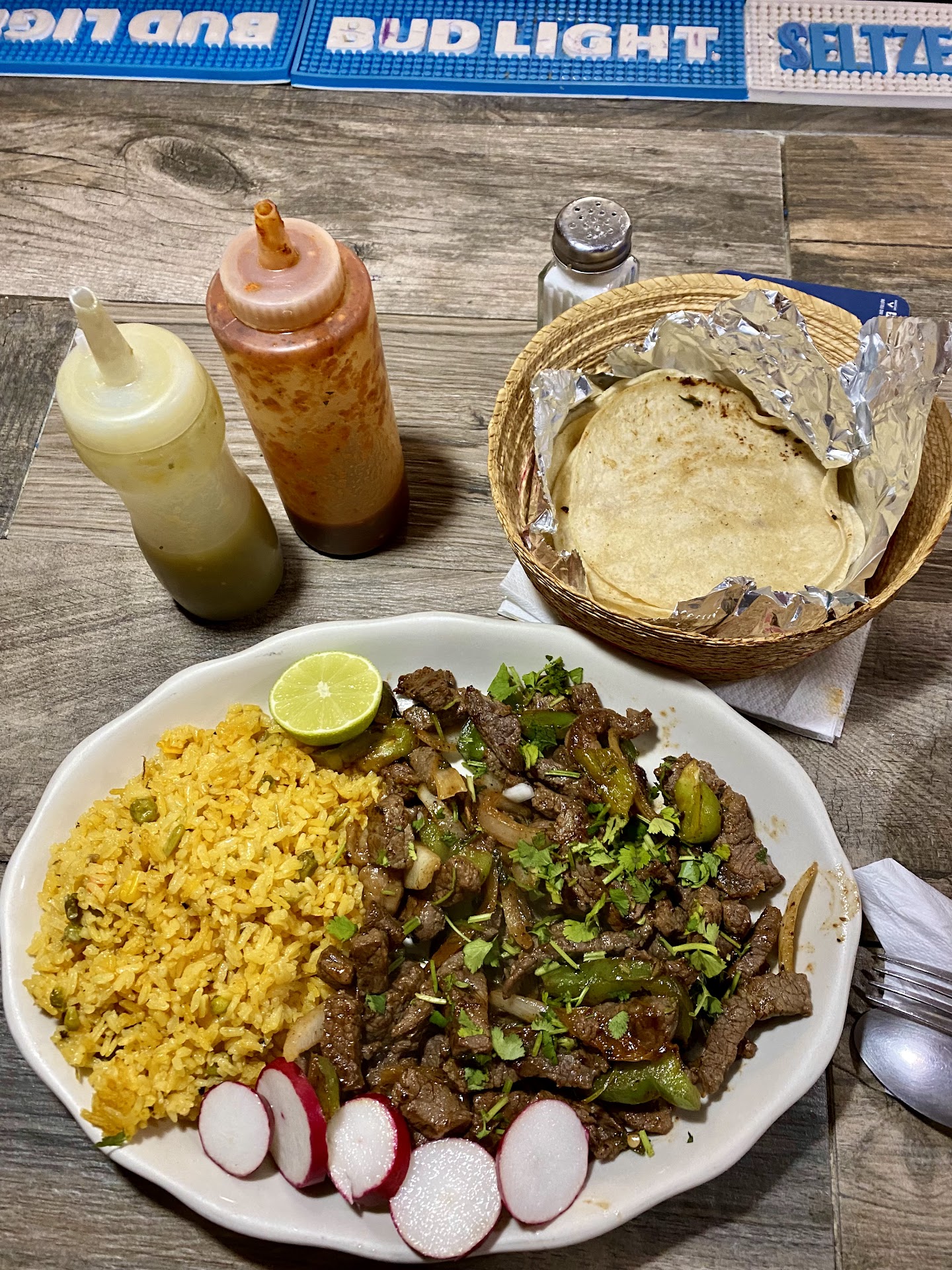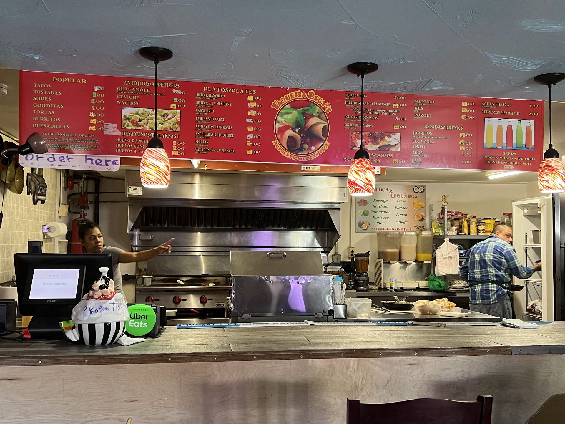 1st I said I'd like to get the Mexican Steak and because of the really bad language barrier I had to point at the menu item-the lady said NO, I said ok can I get the Steak Ranchero she said ok then I said with NO beans, she repeated no beans to me, I said yes, then she said ok.