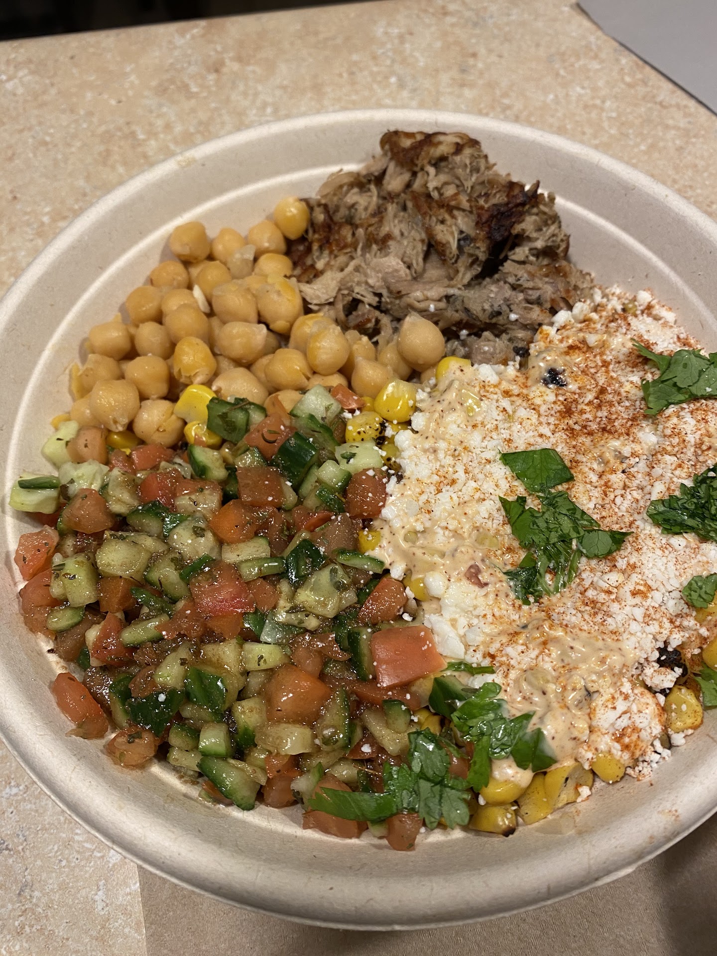 BBQ bowl: the perfect balance. I could eat an entire bucket of the tomato and cuke salad. Their bbq sauce is homemade including the ketchup they use made from the scraps of tomatoes from pico.
