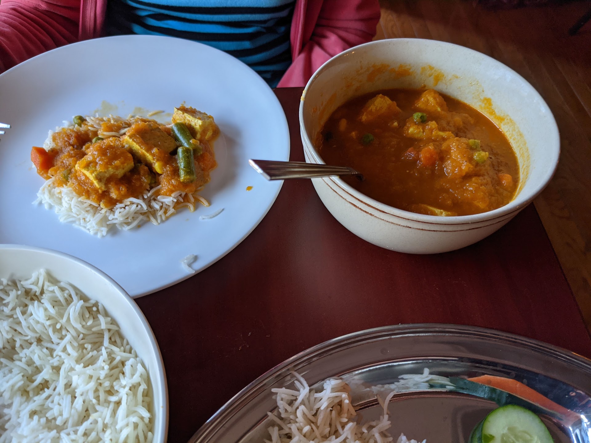 We had the gundruk soup to start. Spicy, but lacking content. Very few soy nuts.