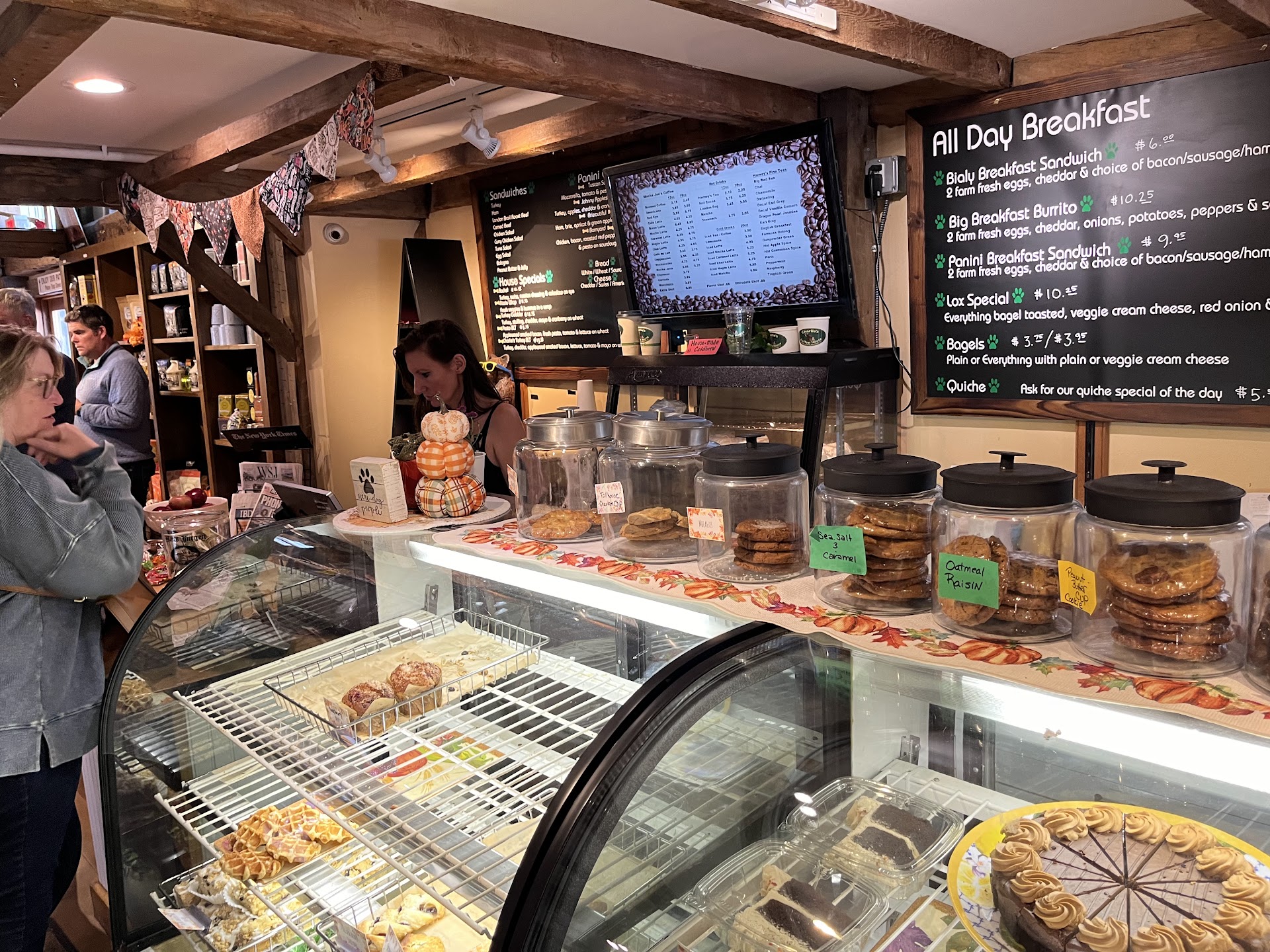 Read moreSpiral Press closed, moved from their former host, the fantastic Northshire Bookstore, and now persists incarnated as the newly opened "Charlie's Coffee House" in the owners beautifully renovated building with their own, small parking lot.15 min. limit time in spaces close to the entrance! (Nov. 2018) The large beamed, slate roofed structure used to host the town's Chamber of Commerce. I've posted some pictures of the insides and out, including the current hours and a little of their menu. Former Spiral Press patrons can transfer their rewards card(s). I hope they'll post how much their eatables cost, soon. Very nice dining area. Free wifi. Looking forward to trying their intermittent soups which switch places with their mac'n'cheese. There are pre-prepared cold sandwiches and salad plates ready to go from a cooler. Coffees, cookies and pastries. Looking forward to trying their sliced and stuffed...