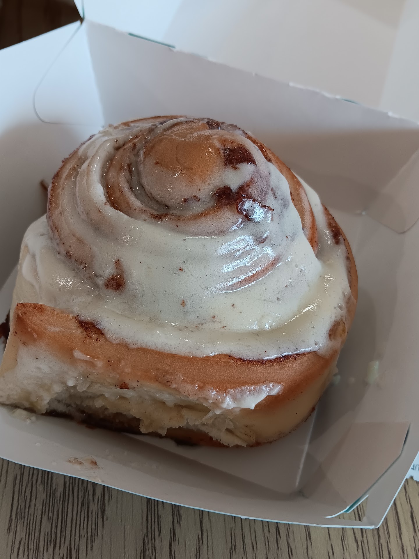 Counter-serve chain serving cinnamon rolls plus other baked goods & specialty frozen beverages.