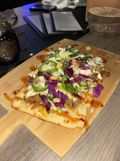 Fabulous atmosphere, a "vintage"bank. The owner retained the beautiful old tile floor and has plans to turn the bank vault into a space for groups (up to six) to have wine tasting experiences. The acoustics are conducive to conversation. My roast beef salad with balsamic glaze was excellent. Note: Flatbreads are not available for lunch. Very timely and attentive service. Overall, a very nice place to catch up with friends. And one friend who had a glass of wine said it was very good, too. I love to support small businesses, especially those owed by women! A gem in a vibrant...