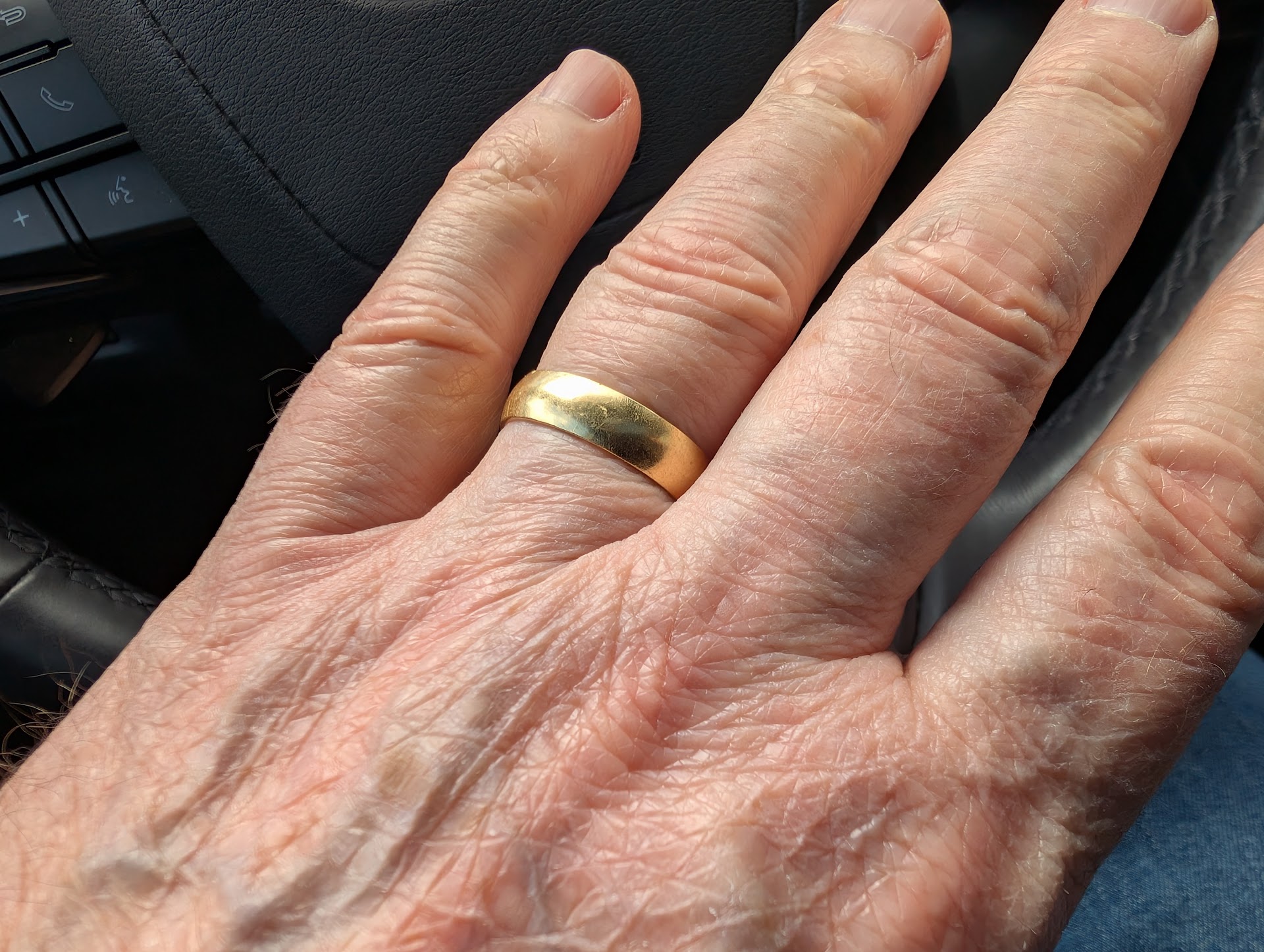 I noticed my ring finger was bare Saturday morning, and I freaked. I searched my office where I often fiddle with the band, tore our bed apart, and then the car. Then the metal cling reentered my mind. Damn. That had to be my ring in the parking lot. My hour drive back to Manchester was worrisome, and my scan of the parking lot did not strike gold. With hope waning, I walked in and asked the same friendly host if they had a lost and found. While he rummaged through the stand drawer, our server recognized me. She took my info while the host went to ask his manager. He reappeared and handed me the ring! Nate, an employee, had found the 💛 symbol in the parking lot and turned it in. Not everyone would have.