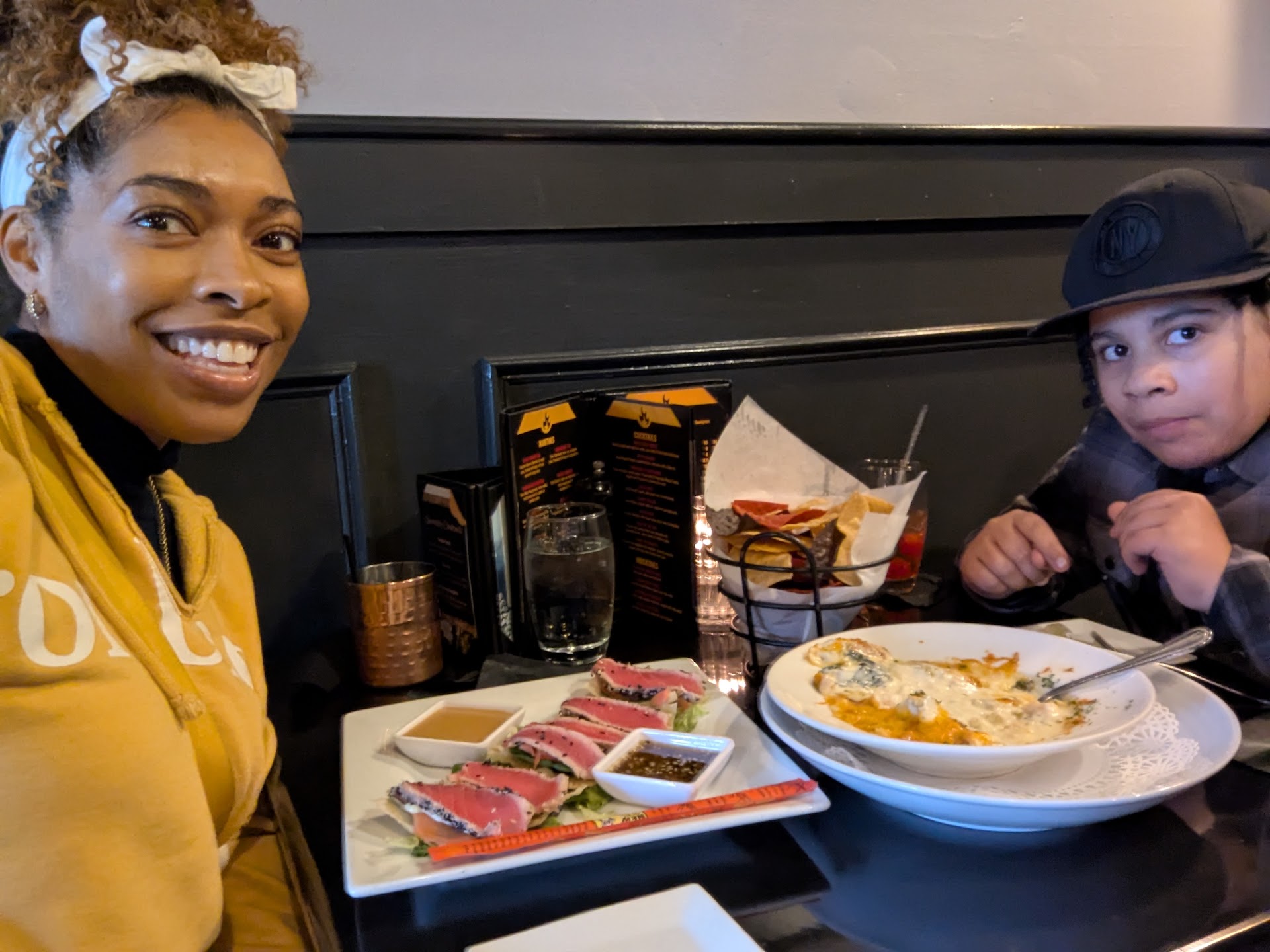 I went back and paid for the parking using the Passport app... and in that time span, our host had a spot cleaned up for both of us at the bar and told us we could order in and sit down to eat. This was fantastic of her.
