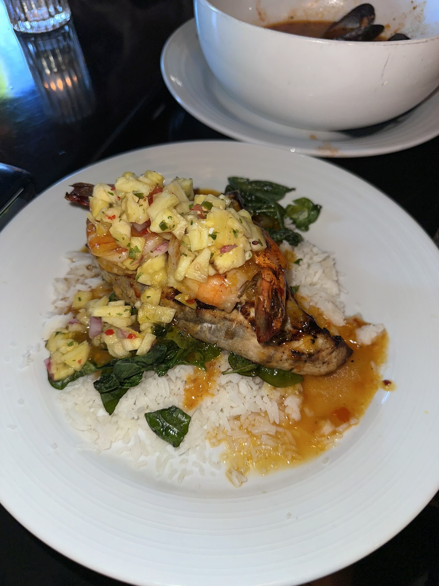 Main course was terrible. Got the Cioppino based upon prior recommendations. Several muscles and a clam were dead and not opened. For the price I’m surprised they were served to me. The shrimp was very clearly over cooked as it was very hard and tough. It was served with bread that was undercooked and slightly doughy. Scallops and haddock was good.