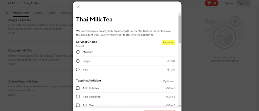 This is my last incident with them. The dosage with the drinks is awful. I bought drinks there and had to trash them because it was not drinkable. Do yourself a favor and avoid ordering from this store. I took it upon myself to reorder online and I didn't have the option to have extra boba and added in the comment that I would like extra boba if possible. When my order was delivered, they wrote on my cup "Extra boba is more money". Sure, I dont mind paying an extra 65 cents so I called them to say, can you please add the option of extra boba online so that clients to not have to ask for it in the instructions. Unfortunately for me, the staff started yelling at me telling me that it is online and that she has ordered many times online and seen that option and that I should simply pay for it and proceeded to hang up on me. I called back and got yelled back some more by another staff claiming to be the manager. Hire people that can take feedback well, it did not have to be that intense plus, the "extra boba" option is still not on the app although the first staff I spoke to called me a liar. It was as simple as not writing on my cup if you did not want any feedback or maybe accepting my feedback and saying that you would look into adding the option for extra boba. For full transparency, I have added the screen shot of Doordash ordering menu. I am not a liar but most importantly not a fool.