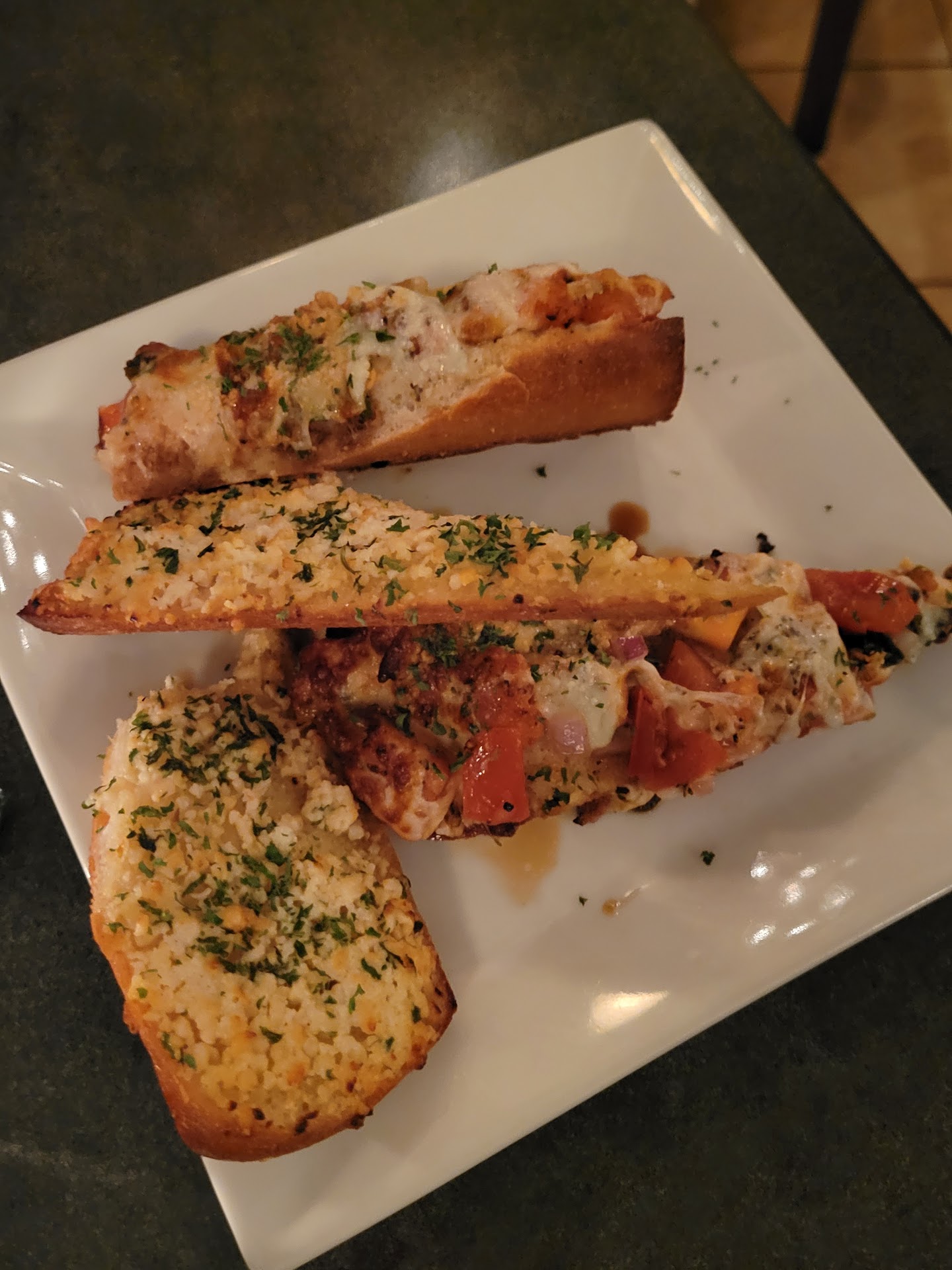 The food was phenomenal. We had the bruschetta and garlic bread. Bruschetta was like a french bread pizza. So good!