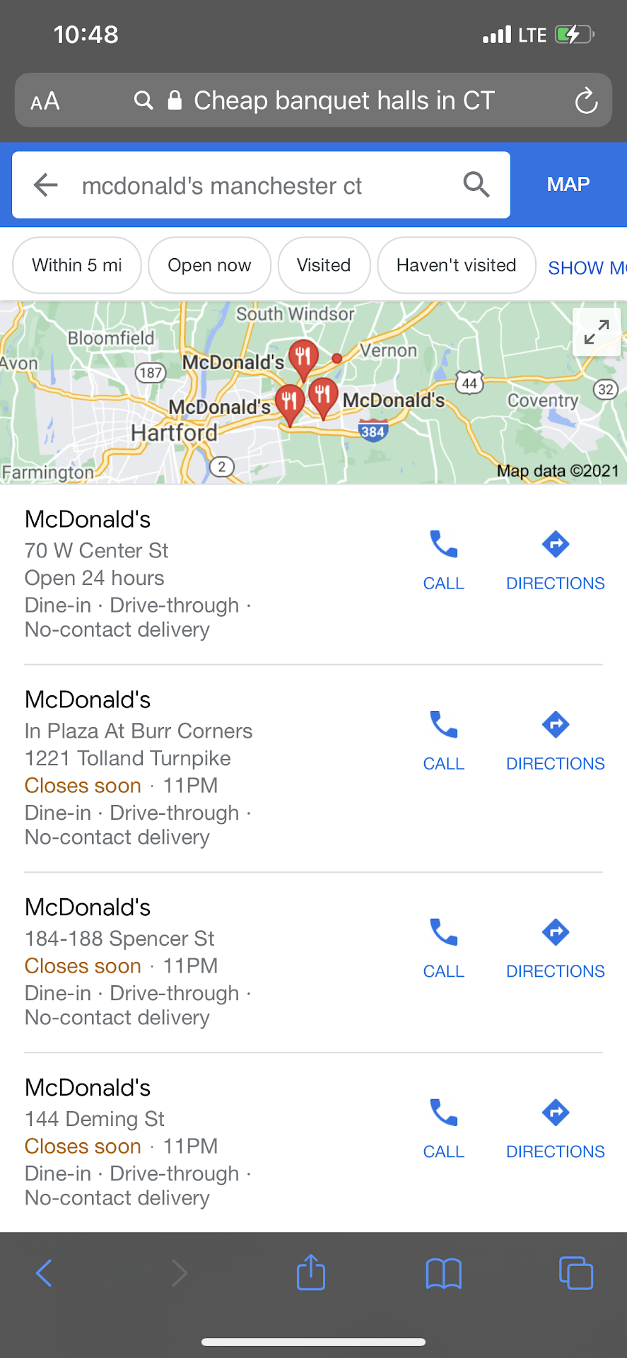 Read moreFirs of all, let me point out that on Yelp this location has nothing more than 1 star reviews!!!! Every person has had a negative experience with this location. The management and customer service here is absolutely terrible! I've already filed a complaint with the BBB and plan on taking this to social media and consumer affairs. Ordered 2 cheese burgers, 1 fry and 2 small caramel frappes and had to wait over 20 minutes to get my order. I live right up the street so my family of 10+ comes here often, usually to get the MCC discount. After screwing up our order and making us wait for 10 minutes the customer service rep brings out a milkshake. We let her know that we ordered 2 caramel frappes and she stood there so confused and asked about 3x, so you ordered 2 caramel frappes? 10 minutes later she comes out with the frappes and asks us to see our receipt before handing them to us. We showed her the reciept and she said it was her manager who made her do it, but she knew that we weren't lying. We then called the manager to ask her why she would have her employee view our receipt in the first place since we had JUST ordered through her! And why would we wait 20 minutes for a small order and not have a receipt on hand? The manager denied asking her employee to view the receipt and never apologized once! She just remained silent, and didn't even apologize for the wait, nothing at all. Will never be coming back to this location. They always mess up orders, are very rude and the management is terrible! Will be traveling to Glastonbury, CT from now where they actually give great customer service! Saddest part is I've been coming to this location since they opened and they have NEVER improved!!!...
