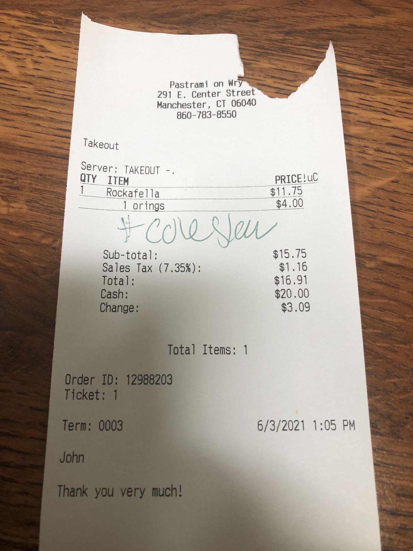 Our son ordered a meatball grinder. The bread was stale, and the meatball was so flavorless. It just tasted like a ball of ground beef. Some salt and sauce would have gone a long way, at least!