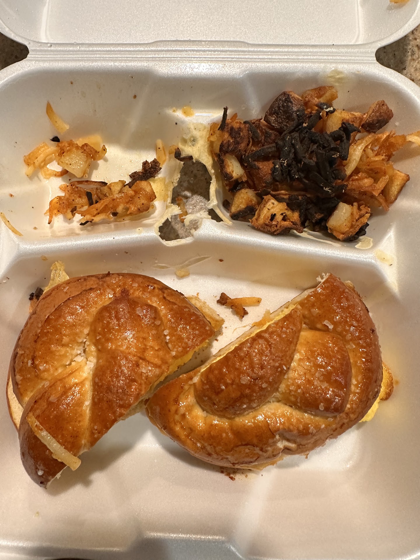 I ordered the Pastrami Pretzel sandwich and that was probably the best thing we got, but for 12$ I'd say it was small. Fries are extra so I paid 4$ extra for Garlic Parm fries that were meh.