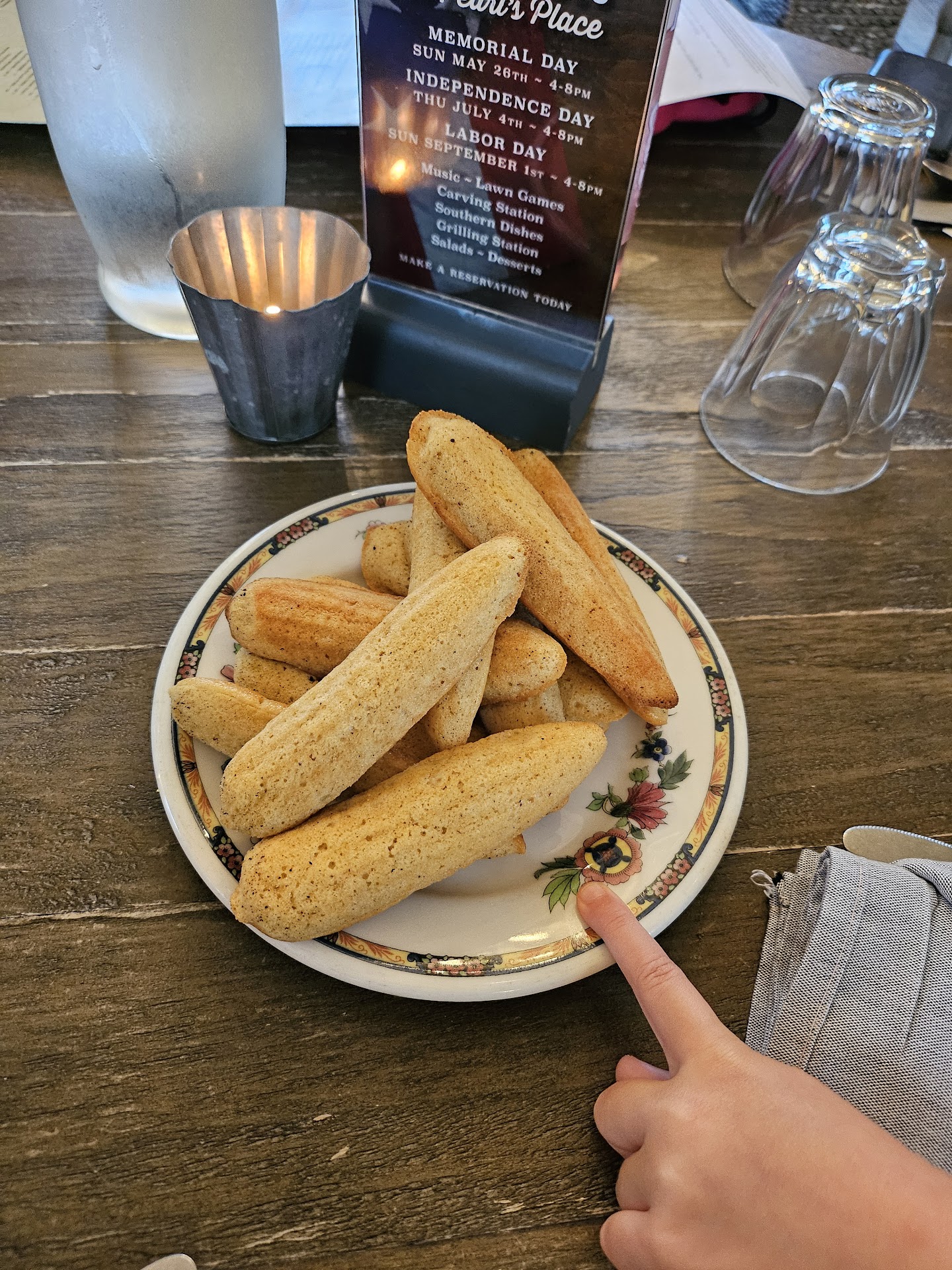 Now for the food.. It was great! The menu is fantastic and so many excellent choices. I had a specialty Old Fashioned to starts as a cocktail. Excellent craft cocktail that came with a cherry and a candied peach (I think?). I had Oysters Rockefeller and they were probably the best I have ever had. At first, I was unsure of what the loaf of bread was for that came with it.. Well, I figured that out for myself very quickly and will let you figure it out yourself ha! My wife had the biscuits and gravy for a beginner and that was great also! Our kids had the Mac and Cheese and Fried Shrimp with Fries. All excellent! And probably one the best Mac and Cheeses that I have had anywhere that was suitable for adults and not just dumbed down because kids are eating it. My wife and I, both being big BBQ fans, decided to order from the BBQ menu. We did Ribs, Brisket, Pulled Pork, side of beans, grits, collard greens and yams. I cannot comment on yams as those aren't my thing but my wife said they were good. Everything was great and up to high standards. The portions were fine and we took home food. One thing to pick on since I am in the world of BBQ, they list their ribs as St. Louis style, but this is incorrect. These are full spare ribs and are not cut squared off like how St. Louis style ribs would normally be served. Its a non issue but for anyone that knows, they notice... Unfortunately we were too full to try desert.