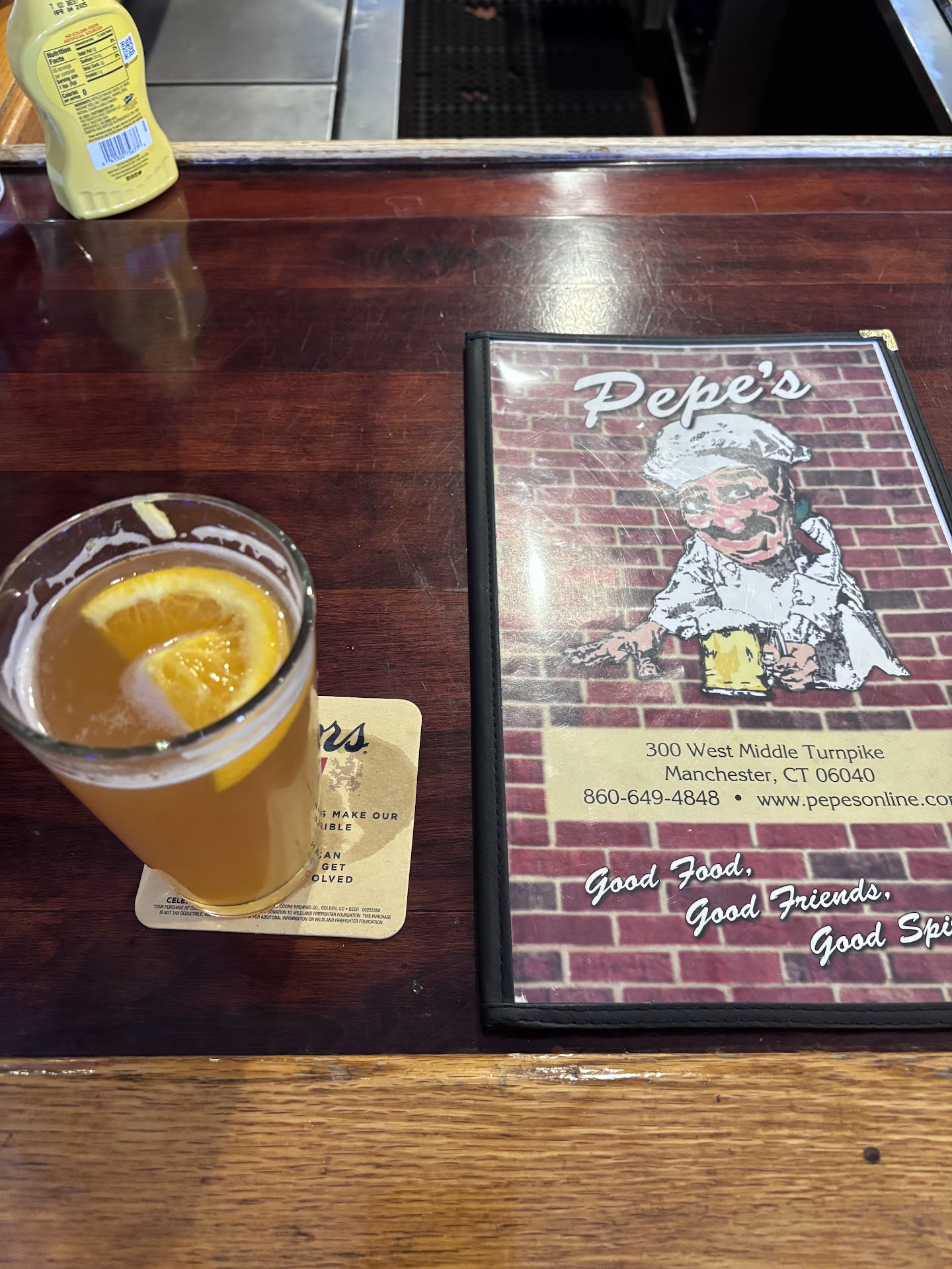 Ā Ā Ā Read moreWell I sometimes wonder if I will enjoy a very rare evening out at a local tavern or "adult drinking establishment" so I get nervous to mix it up from my usual places of casual cocktails and appetizers. I stumbled upon this little gem called Pepes in my travels through a small rural town called Manchester in Connecticut. It was a lovely place. Intricate detail on the menu and with the decor. Absolutely enchanting atmosphere with the most genuine and professional bartender I have ever had the pleasure of acquaintaning. His name was the "Tank." I think maybe Fred or Frankie. He was delightful. Movie star hair, body builder physique, and the charm of a thousand Joey Tribianis from that popular show Friends. I mean this guy was outstanding. He poured me a frosty bud light or so the kids call it #america light. No foam or anything! Also I was given a shot of the finest bourbon and he didn't spill a lick. I was offered a "chef's salad" and respectfully declined but his ability to suggestively up sell waa a thing of beauty. I concluded my evening with a gentle hand shake and dispensing kindly from my wallet a generous 73% tip. Trust me, it was worth it. Overall, I would like to thank that "Tank" character for a riveting experience I only will be able to recreate in my dreams. Thank you Fred, or Frankie, thank you. Sincerely....Terrance Edward Michael...