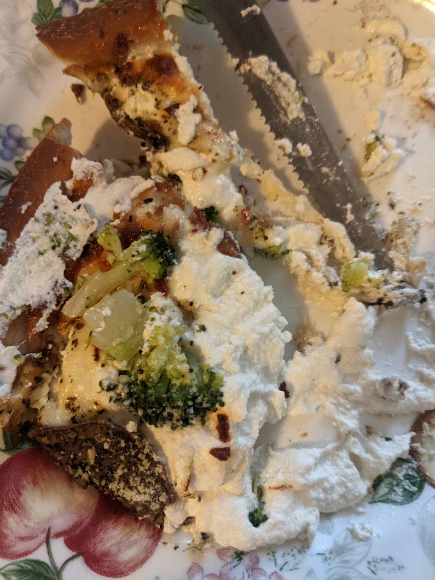 Ā Ā Ā Read moreUnpredictable and inconsistent. When someone who cares is making the pizza, it shows, but sometimes you'll get something decent, sometimes you will get something absolutely inedible. We used to get the potato special pizza all the time, it's an all or nothing pizza I guess. There's either so little ricotta it's dry or so much that even after waiting 30 minutes for it to "set" it's impossible to eat or enjoy, and truly would give even the strongest dairy loving stomach pause. The broccoli last time was spoiled, so we ordered it without and put our own on at home. There were 4 tiny slices of potato on 4 pieces of the large pizza we ordered. They are literally dredged in so much dry oregano/Italian herb seasoning that they are also not tasty. The pizza we brought back no joke weighed about 5lbs, most of which was 2.5-3" thick of ricotta, and greasy cheese. The amount seems like a practical joke. Bacon was so tiny it looked like red pepper flakes, rather than an actual topping component. Since we have no idea how or what to order anymore, we will not be wasting the time being frustrated and hungry, or the energy returning for it to be made out to be "our fault" for ordering wrong. We definitely used to enjoy it occasionally in the pizza rotation, but life is too short...