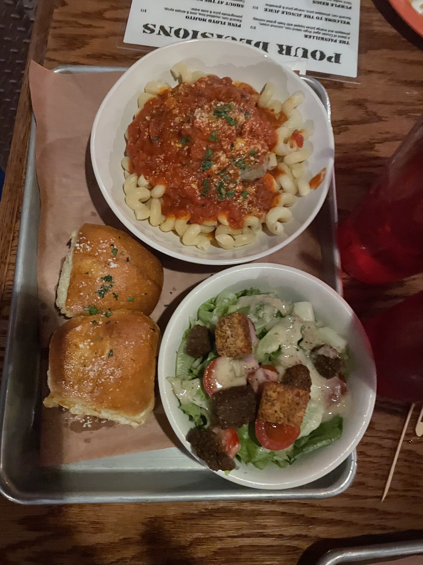 My daughter got traditional Italian over cavatappi pasta with garlic bread and salad. She loved it.