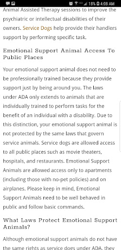 Ā Ā Ā Read moreI would love to let nathan know (since I have no way of contacting him personally) that emotional support animals or ESAs are not allowed public access, unlike service dogs. Look up ADA laws. There is no certification, and there is no reason to have "outings" other than to have your dog with you.