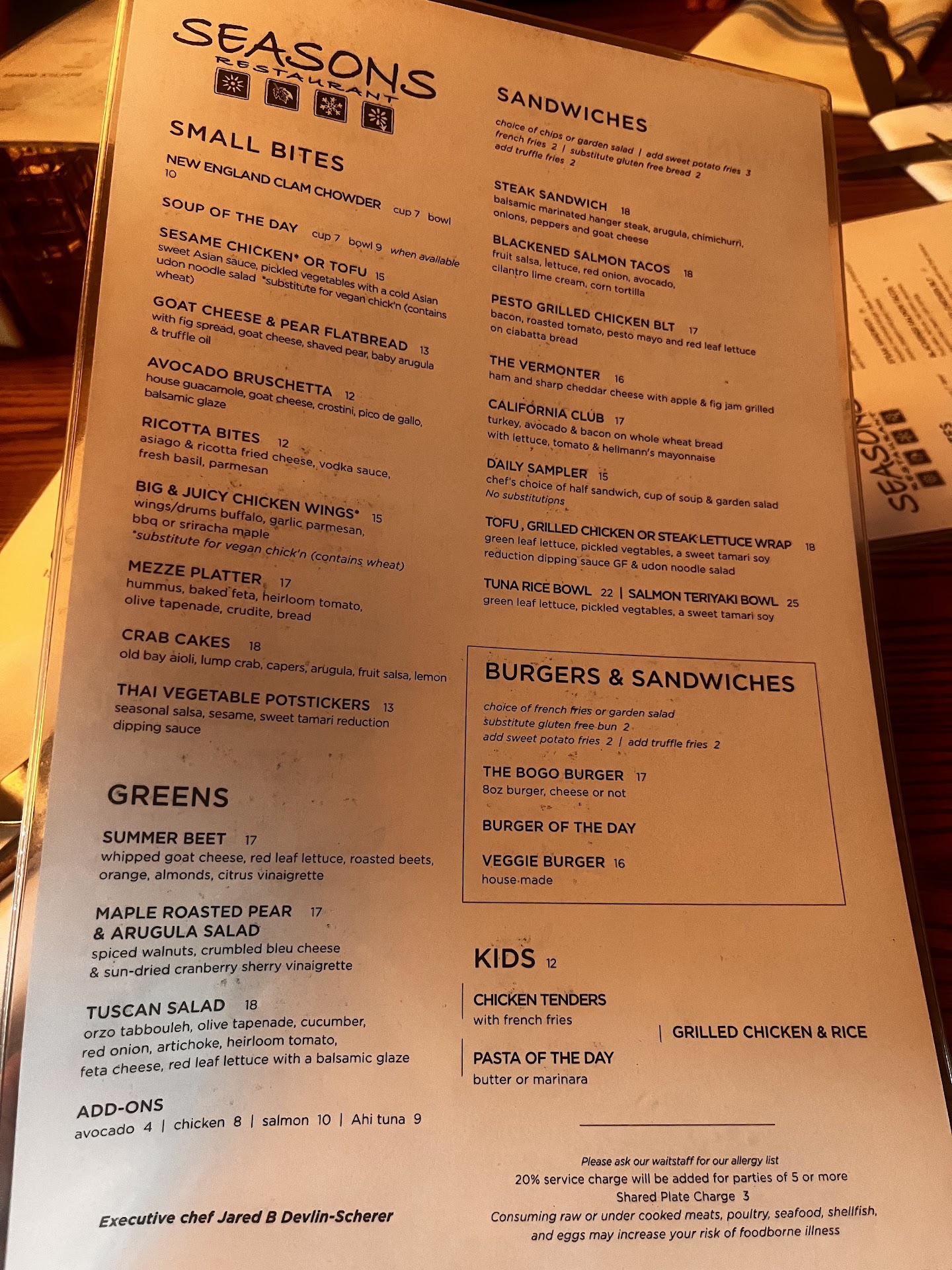 We are disappointed in the experience we had. It started when we were being seated by a server at an outside table. He made the comment “I’m not in the mood for people today” Great first impression.