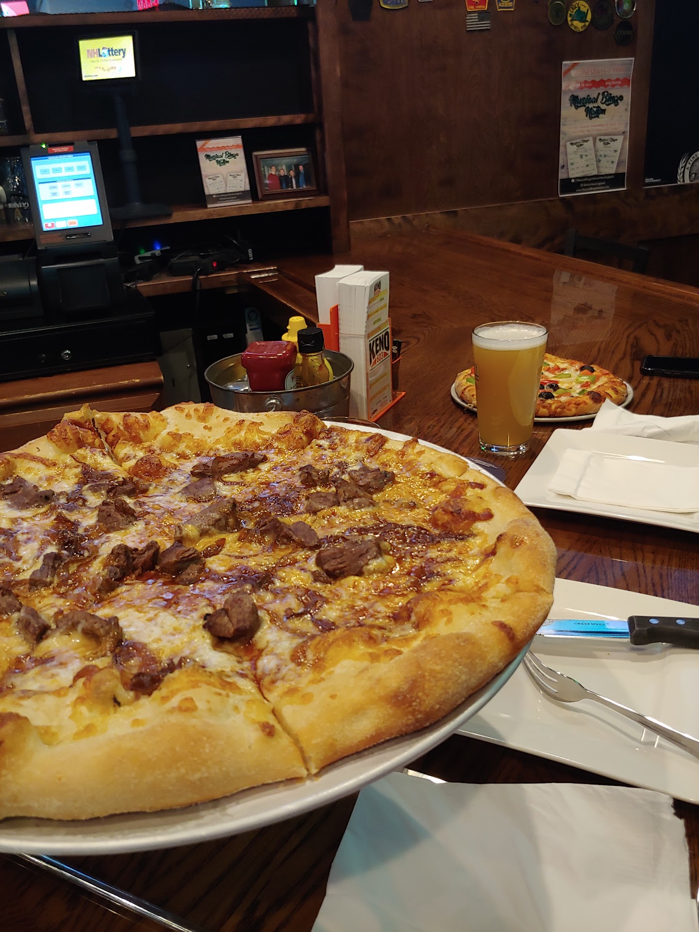 Read moreAlways a great meal here. The fried pickles are especially good, they have fried peppers in there too. This time we were there to try the pizza and were not disappointed. Very thin crust - too thin to hold up a lot of toppings - but I like that. Great flavor, not too crispy. I had the bbq, steak and caramelized onions pizza - yum!! 10/10 for that pizza! My boyfriend had the small farmers market pizza. It looked like it tasted great and has lots of cheese, but it just needs a little more crust support. The toppings were falling all over the place. The small pizza is a great size for one person, but I recommend just going for the large and having leftovers. :)