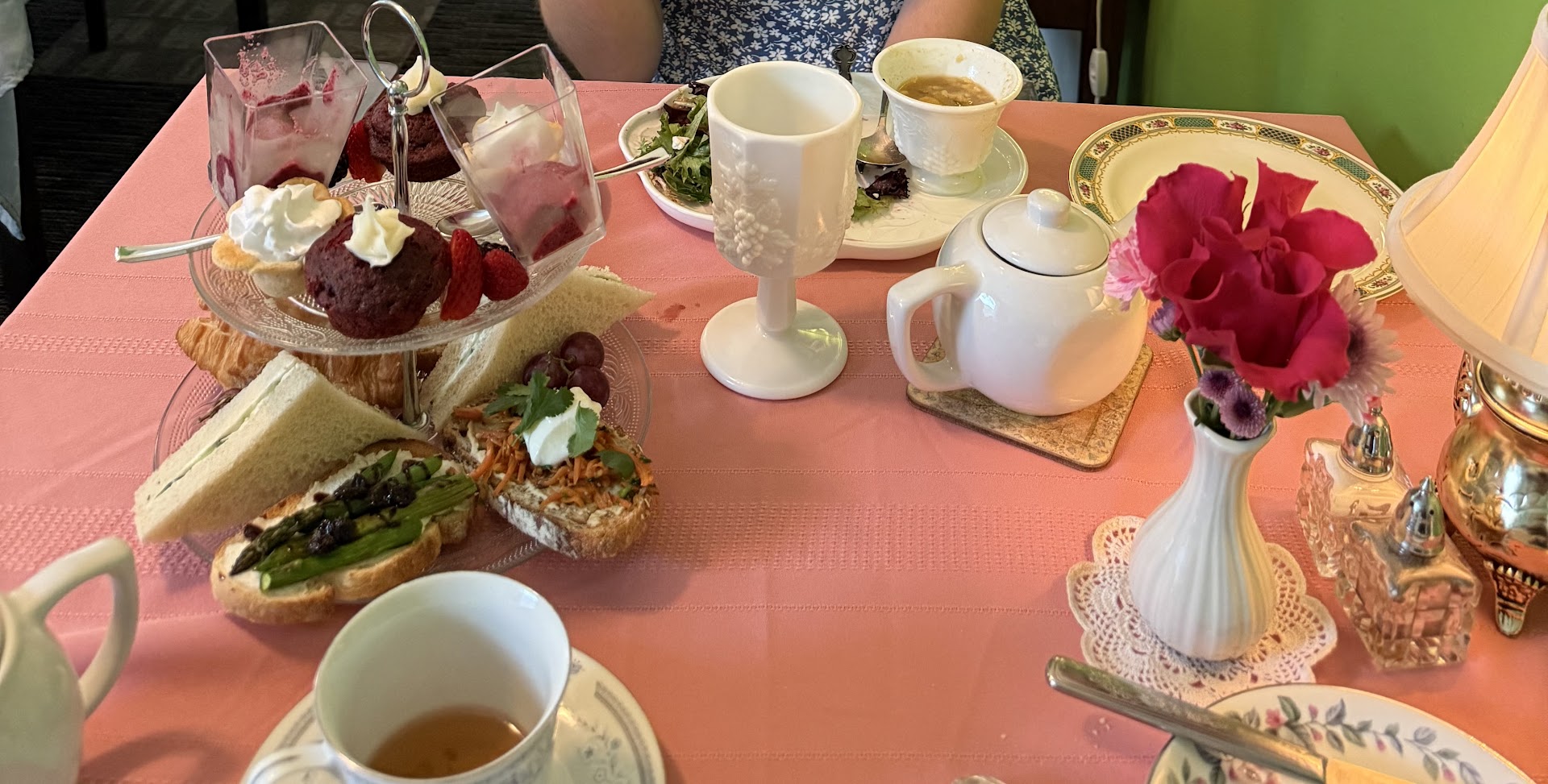 Read moreI give the food 5 stars! The individual rooms are warm and inviting with the decor and ambiance. We were surprised though with the length of time we waited between getting our tea and waiting for our scones. My teapot was cool by the time my scone was served. No Devonshire cream, jam or lemon curd were offered. Then our soup came out, it was amazing! waited another 15-20 minutes before the tiered serving plates arrived with the rest of our food. Wait staff was polite but very timid, never asked if we wanted anymore tea even though we all paid the extra for a "bottomless" pot of tea. I know that having "Tea" is a leisurely event, I worked at and was manager of a Tea Room 20 years ago and I know that each Tea Room has their own way of presenting it, we were just surprised as we have been to many tea rooms and this one was the first that was so different from other experiences. That being said, I would go again now that I know how to plan out the rest of the day...