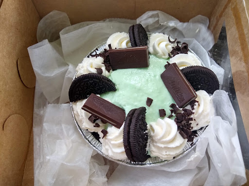 an experience i will not soon forget. the staff here did a great favor for me on my visit. while on a recent road trip through the area i was researching for bakeries nearby and found their webpage. things looked delicious and i scrolled through the options. what popped out immediately was a listing under pie flavors for grasshopper pie. really an all time favorite of mine and seen very rarely recently. it's a chocolate cookie crust with a mint mousse/cream filling and topped with whipped cream. love it. pointed the car in that direction with anticipation. arrived to find a cute little bakery that does a huge variety of items. fantastic looking donuts, cookies, cakes, brownies, bagels, etc. quite obvious they are popular as some cases were low on stock. but the items here were lovely. i wonderful lady-wish i had here name-asked me if she could help me. seeing no slices of said pie in the case i asked about the availability of the grasshopper pie. she conferred with the folks in back doing the baking and reported that no unfortunately it was not available. heavily disappointing. so while i perused she helped customers who had recently arrived. after deciding to try a brownie, the baker came from the back to say that a 5" grasshopper pie could be made if i had a few minutes. seems that earlier that day the had made a special order 12" grasshopper and had a quantity of the filling left to produce the small version. immediately it was yes from me. chatted and browsed as it was created. what came out was a gorgeous pie that i just knew was going to be delicious. you could smell the wonderful mint just holding the box. purchased the brownie also and thanked them profusely. i will mention that while the brownie had nice chocolate flavor, it was quite dry. maybe a day or two too long on the shelf. after dinner it was time for pie. and as expected it was perfect. all ingredients fresh and flavorful. they had decorated the top beautifully Andes mints and Oreos along with puffs of cream. the texture of the filling was exactly as it should be-firm not runny, light and airy, and full of delicious mint flavor. it was all i could do to not finish all of it in one sitting. as my wife is not a fan of mint it was all mine. i can't commend and thank the folks here at this area treasure. i only wish you were closer to my home so i could order this regularly. highly...