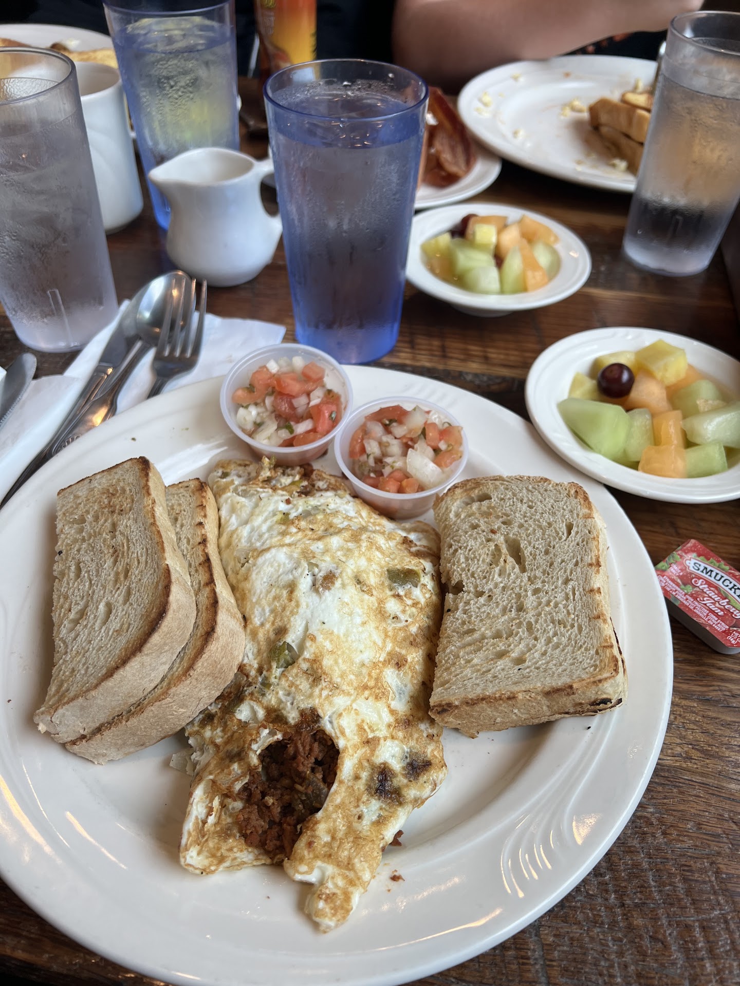 Let’s start with the Chorizo Skillet — WOW. It came piping hot in a skillet-shaped dish, loaded with seasoned potatoes, perfectly cooked chorizo, sautéed peppers and onions, and topped with beautifully runny eggs and a blanket of rich, creamy cheese sauce. It was hearty, flavorful, and hit every savory note you'd want in a breakfast dish. The side of fresh pico added the perfect tangy brightness. Easily one of the best breakfast skillets I've ever had.