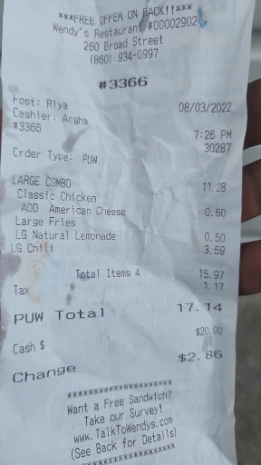 Read moreI've never been to a Wendy's restaurant drive through where I wasn't greeted before being asked for my order. To make it worse, neither the person at the pay window, nor the one at the pick up window even acknowledged my cheery hello when I pulled up to each window. My teenage kids in the car with me were astounded. The food was just pushed out the window and I guess we were dismissed. Not even a response when I said thank you. My son who was in the car ahead of me said he experienced the same treatment. I'm giving the food the two (2) stars because Wendy's have always impressed me with their food and drinks. That's why I always choose them for any daddy meal. As for that location, I would never recommend anyone to go there. The manager who runs that place needs to train his staff in hospitality, not just how to flip a burger and push it through a window. I hope it's not a reflection on how the staff is treated behind the scenes, so they're now taking it out...