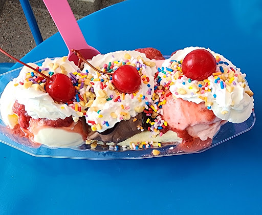Ā Ā Ā Read moreHusband and I went in for a sweet treat. He ordered a banana split, and I ordered a flight. I chose Samoa, Lemon Biscoff, Mint Chocolate Chip and Key Lime Pie as my flavors. I enjoyed all of them, but the Mint Chocolate Chip was my favorite. My husband enjoyed his banana split too.
