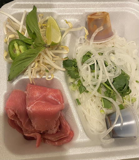 Rare beef pho was a good flavor. But tiny serving. One jalapeño?? For a whole bowl of pho? Wow. You canât at least lavish your customers with a healthy amount of toppings as your protein amount is so minimal? Even the noodles were a negligible amountâ and they should be heaping. Nope.