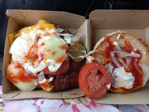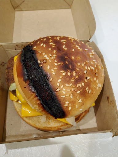 Read moreThe 2 pictures are one of the first mess and second or the wet sloppy mess. I ordered a deluxe quarter pounder. It was put together so badly the cheese was half on the carton and patty hanging off the other side with a stack of pickles and a stack of tomatoes and large chunks of the side slices of the onion and some regular onion and no lettuce. While I was trying to even out the sandwich in my car because no dine in. It fell onto the floor of the car getting dirt and even fall leaves. I called the 1800# and they said to just go back and they will fix it and make it right. I returned and they asked if I had the sandwich. I showed her the bag and was going to take it out and she said oh no we can't take it back. She left the window and returned and asked for the sandwich that the manager wanted it to write it off of throw into the waste something along that lines. I gave it to her not thinking. She said she can take it because it was in a bag. In a bag that had been in my car and my hands. Did someone forget about COVID? I had to wait a few more minutes then she was handed to bag that Miss Sunshine earlier gave me a straight face silent look as she handed the bag. I went and parked to finally eat. The top right side corner was all wet. I thought that was unusual. Then when I opened the box you could see the patty looked wet. The burger was so sloppy you would need a spoon to eat it. I feel the washed the patty and put it on another bun with lettus on it this time. When the wet on the box dried you can see it was water because only a small spot was grease. I would not trust them. Not sure why but the woman at the window had 20 dollar bills paper clipped to...