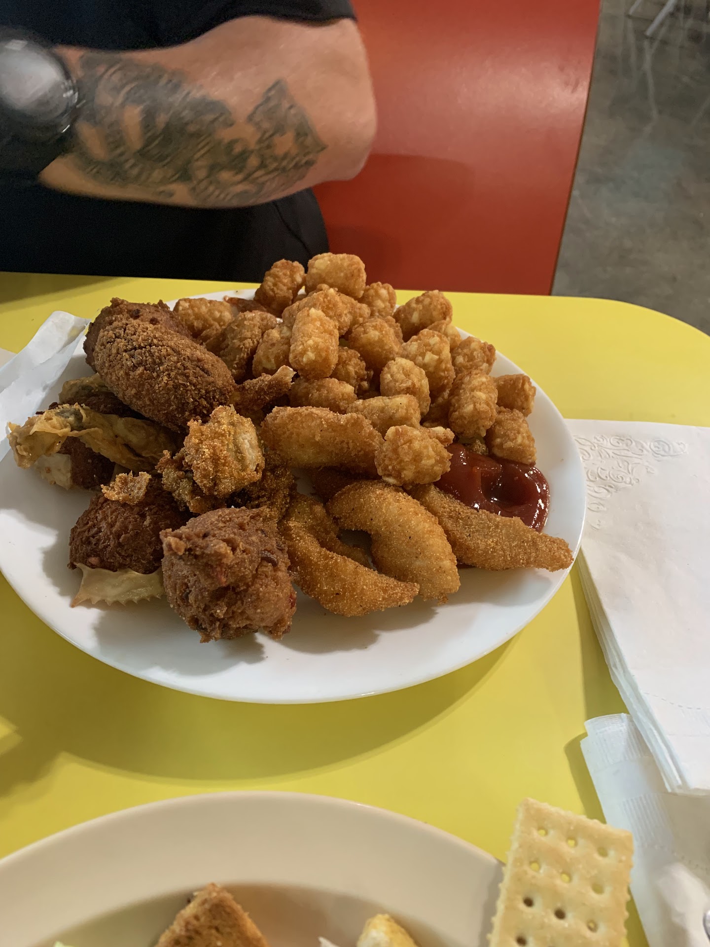 Read moreI so totally wanted to give this 5 stars. And the reasons I’m not are not many but are important. It was not busy in the dining room. But it took forever to get menus. Once we ordered it took literally 18 minutes to get our hush puppies appetizer and then another 8 minutes later we got our salads. 3 minutes later we get our entrees - seafood platter and catfish Breaux Bridge. During this time we had one server get drinks and take orders, then another brought appetizer. We still Don’t have silverware. I finally go and get some off the buffet (that is only open for lunch). First server finally brings salads and second server brings entrees. As she sits the plates down she asks if she can take our salad plates….ummm we just got them. Food was good. Nothing spectacular-but good. Mine (catfish) would have been better hot and not room temperature. His (seafood platter) was hot. Waitress then leaves quickly. No offer of cocktail sauce or tartar sauce. We wait thinking she may have gone to get them….. 10 min later I go and ask for cocktail and tartar sauce and get tartar sauce and French Dressing. 🤦🏼♀️ soooo….. bottom line the food is good. Solid on the portion size and flavor. Timing needs work on serving and service needs training on timing. Had the service been better it would have been a solid 4-4.5...