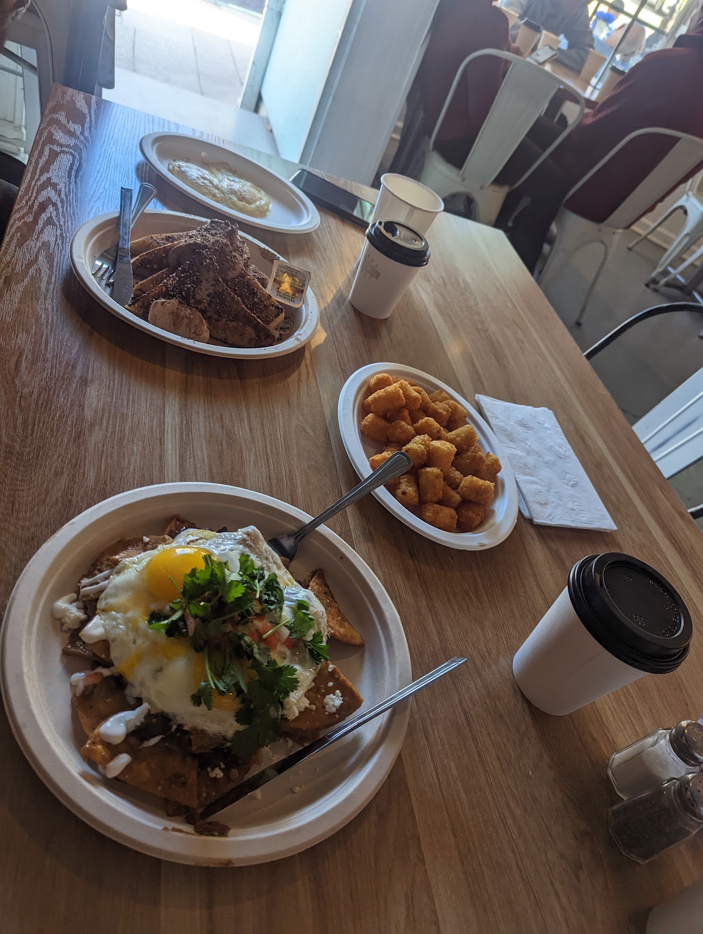 Read moreI am sitting here so incredibly happy and sated after one of the most fulfilling brunches I've ever had the fortune of having - you know the ones where it hits all the right spots ? The great hot coffee , followed by this flavorful savory element ( got the chilaquiles with my eggs unny side up ) and a side of glorious tater tots , and then finishing up with the tiramisu toast. Ngl , I have never liked toast here - maybe because I've never had toast like this - it's perfectly nice and crispy on the outside and oh so soft like a marshmallow, with the goodness of fresh breadyness, on the inside. And the Expresso cream is to die for. This review comes deep from within my stomach's heart - satisfied and blissful. Definitely gonna be a...