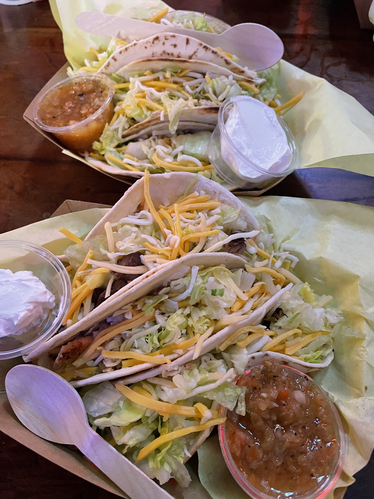 On Tuesdays, they have taco Tuesday where you can get 3 tacos for $8. You can get beef, chicken, or veggies and the tacos come with a side of salsa and sour cream. The meat was tasty, though the veggie option was good as well. You have various options for drinks. There is a pool table in the back. There is a communal table in the middle as well, where you...