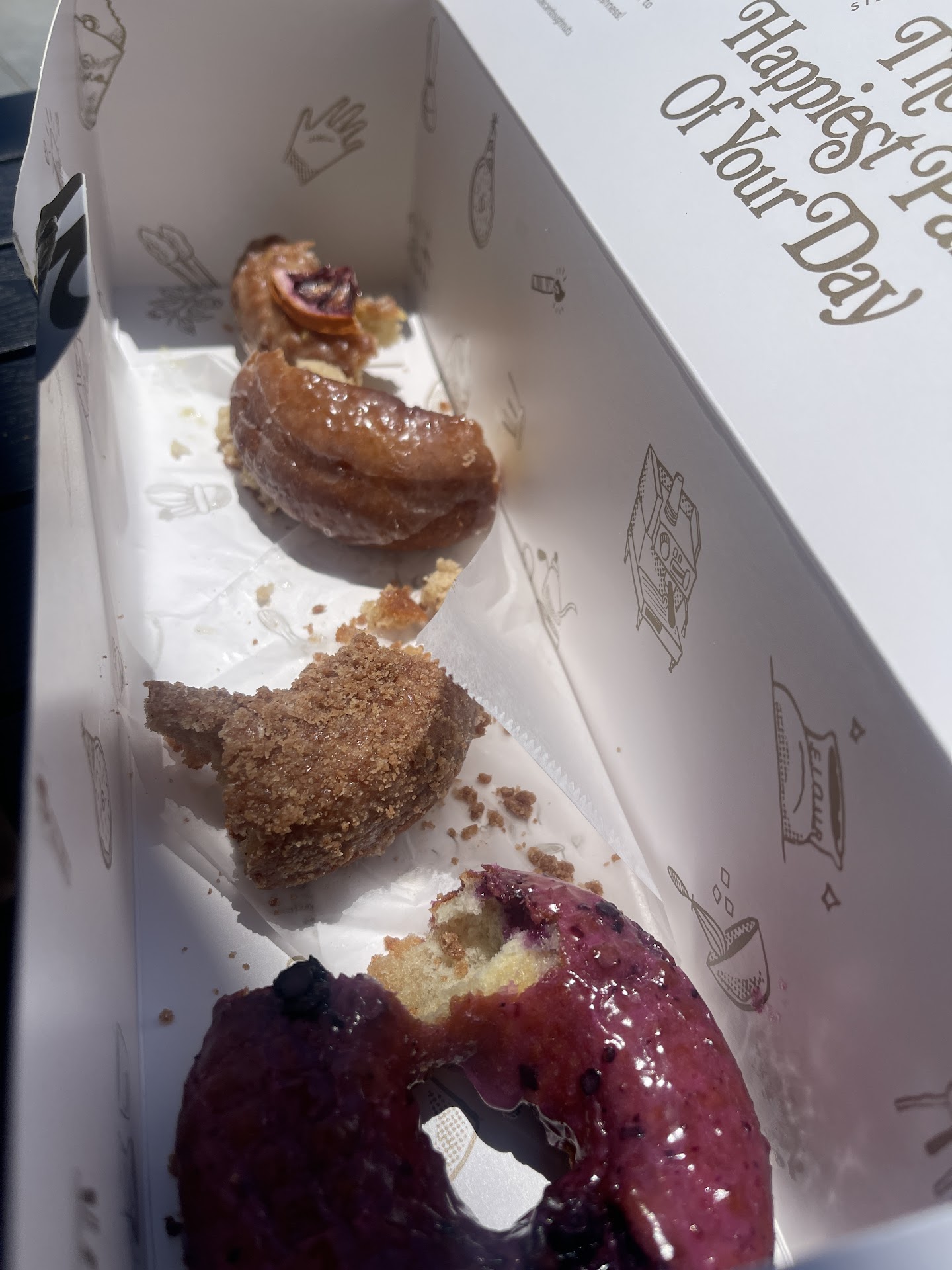 Read moreHands down the best donuts we have ever eaten in our lives. My husband and I are still talking about Sidecar Donuts & Coffee hours later. that’s how unforgettable these donuts are. We ordered the olive oil citrus, old fashioned, and huckleberry, and every single one was absolute perfection. Served warm, they were moist, rich, and bursting with flavor.