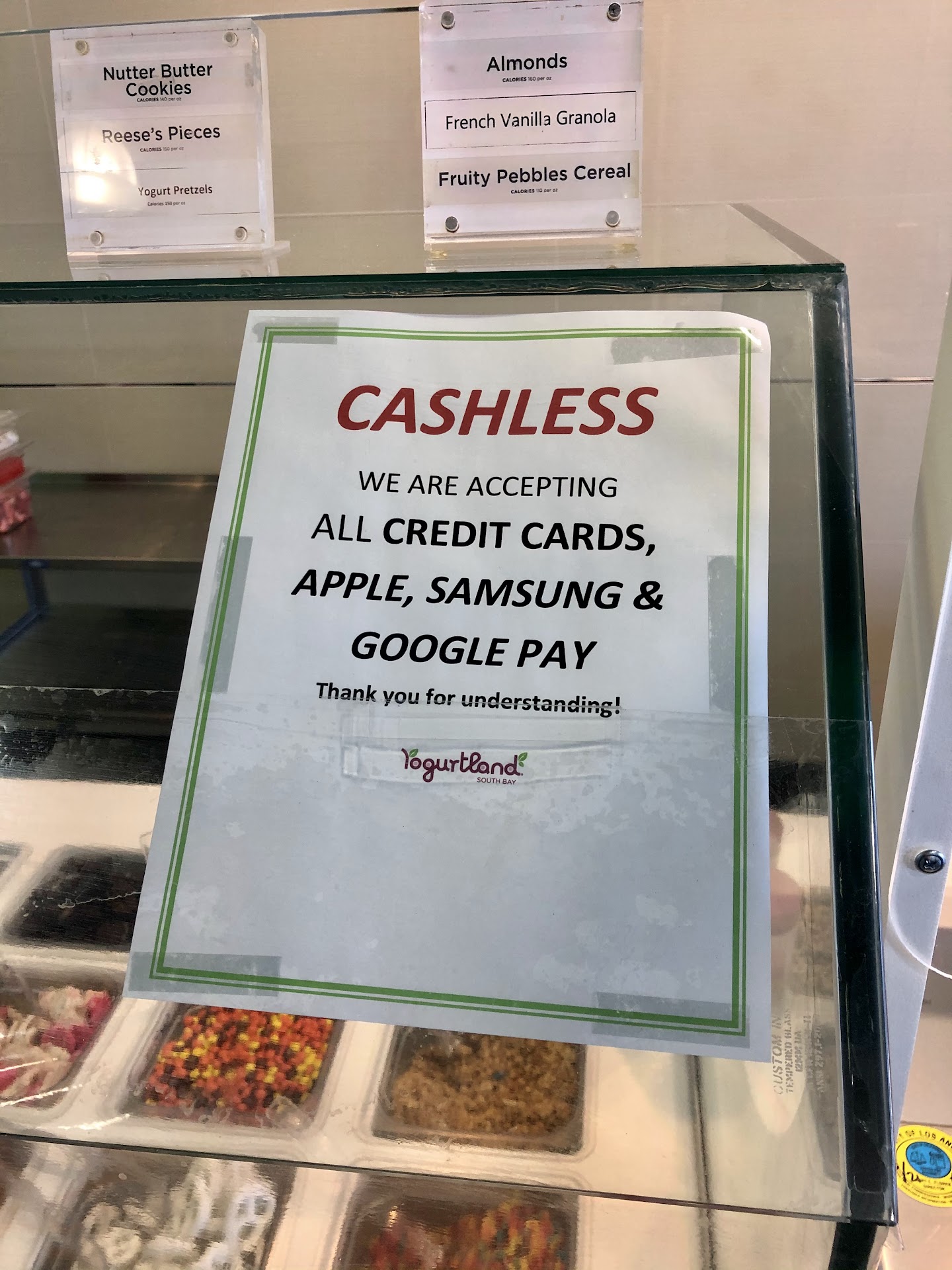 Read moreNo sampling at the moment, but you can get self serve froyo with a sanitized gloved hand. Then toppings are put on by the person behind the counter. Cashless transactions only, so only credit card, Apple, Samsung, and Google Pay are accepted.