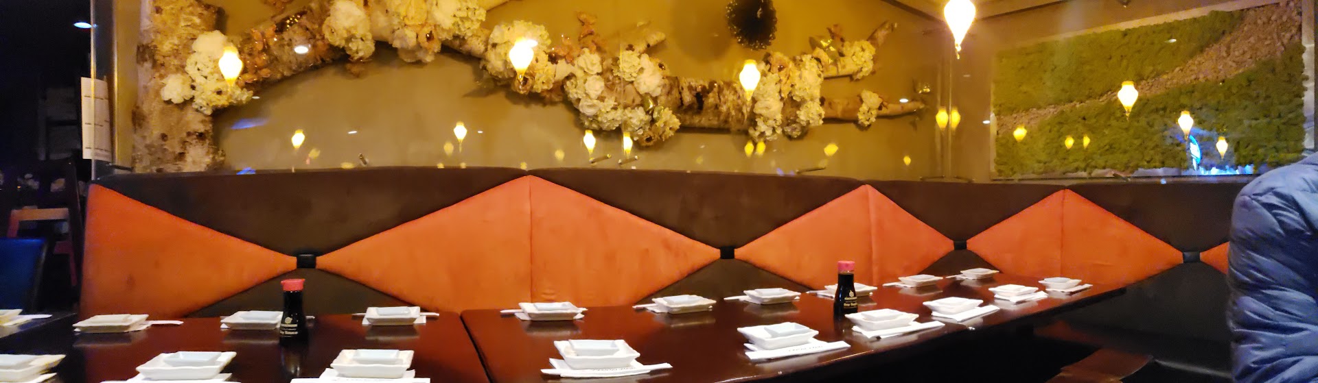 Evenings, especially on weekends, are loud. Music is pumping throughout, and when you walk in to the restaurant you pass through the bar section. Prepare yourself for laser lights (yes, really), big TV's with sports on them, and a gaggle of heavily cologned, well coiffed people. Pass through this and you'll get to the restaurant - which is just as loud - but dense with couples on dates, families out for a fairly priced sushi, and even the occasional celeb or sports figure.