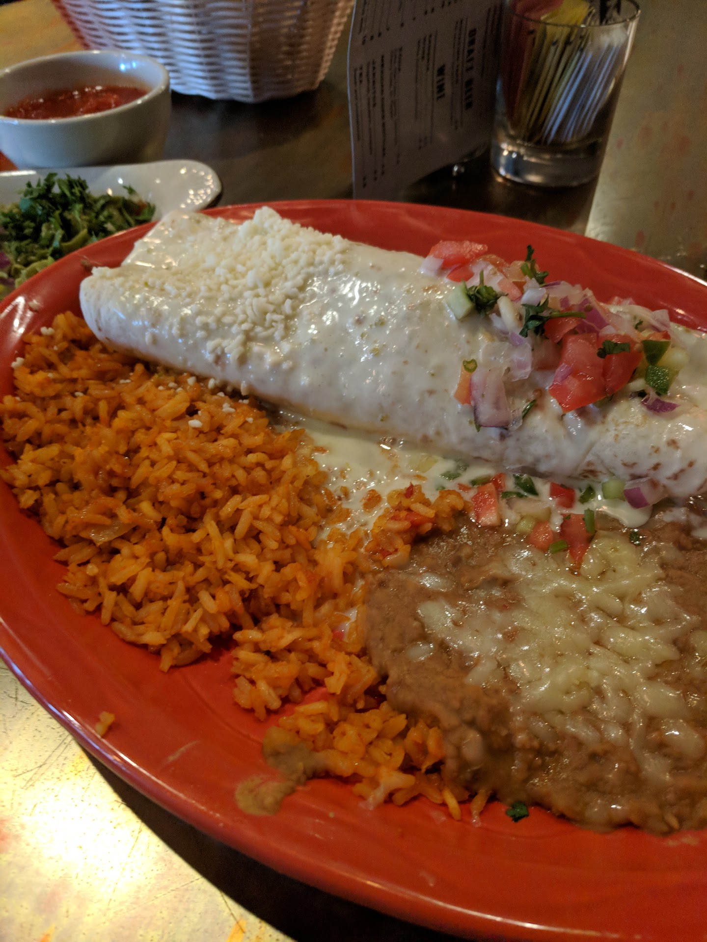 Complementary chips & salsa came to our table after just a minute or so after being seated. We ordered the house margarita on the rocks, which I definitely recommend. I ordered the Bandera plate which was wonderful. A three enchilada plate with a beef with mole enchilada, a cheese enchilada with white queso, and a chicken tinga enchilada with a ever so slightly salsa verde. All three were outstanding. The rice and beans were good. My adult son had the chicken tinga plate which he said was excellent. The amount of food was more than we both expected.
