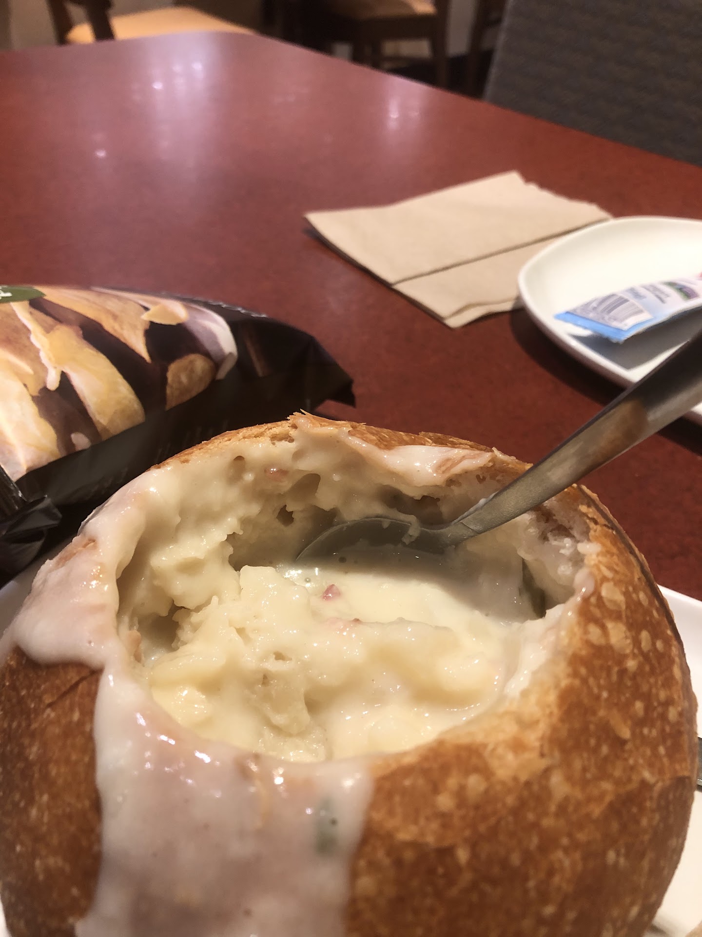 I DoorDash a lot from this location, and while the food is usually very good and well prepped, the last few times have been messy and my order has come out wrong. I've been given the wrong drink, or I'll be missing something from my bag, often a baguette or a straw or a spoon. I know things get busy sometimes but Panera isn't necessarily a cheap place to eat. If I'm paying $30+ for something, I feel like having the correct order is a bare minimum.