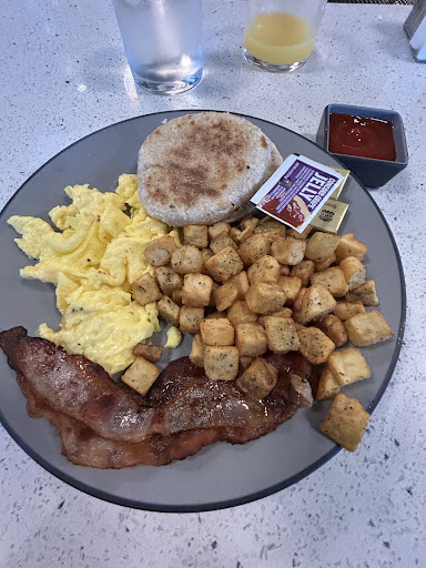 Cons High wait times. Restaurant was at ~30% capacity and the wait staff seemed slow/inexperienced. Servers were quick to ask what we wanted to order before we had any time to look at the menu. After significant delay, they needed to be reminded that we hadn’t ordered yet or received our water/coffee. We also had to flag the server for a coffee refill and the check.